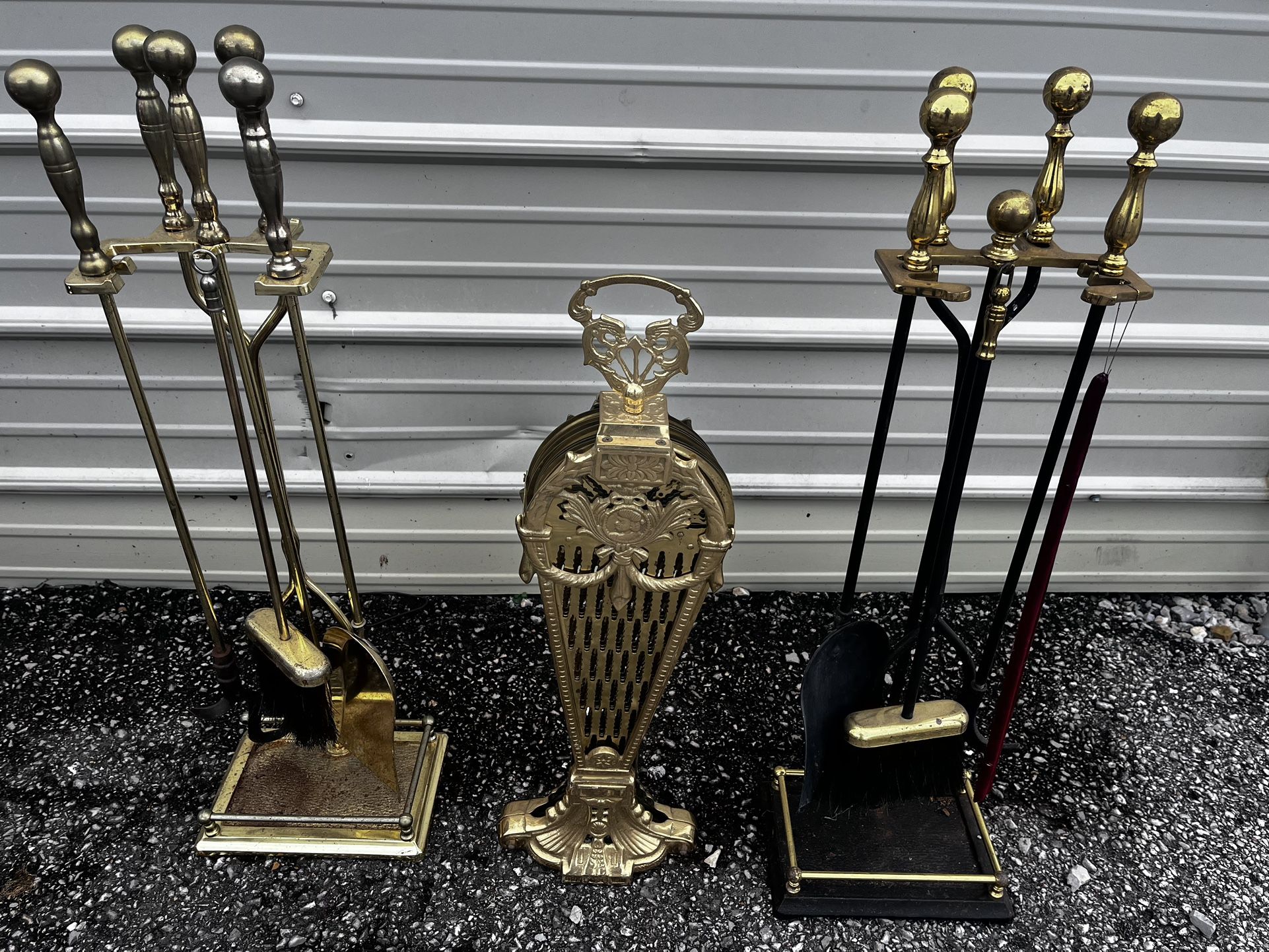 $99 FIREPLACE BRASS FOLDING PEACOCK & POKERS