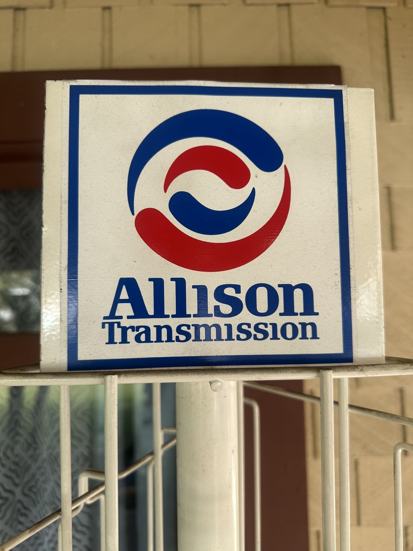 Newsletter holder with Allison transmission logo on top spins