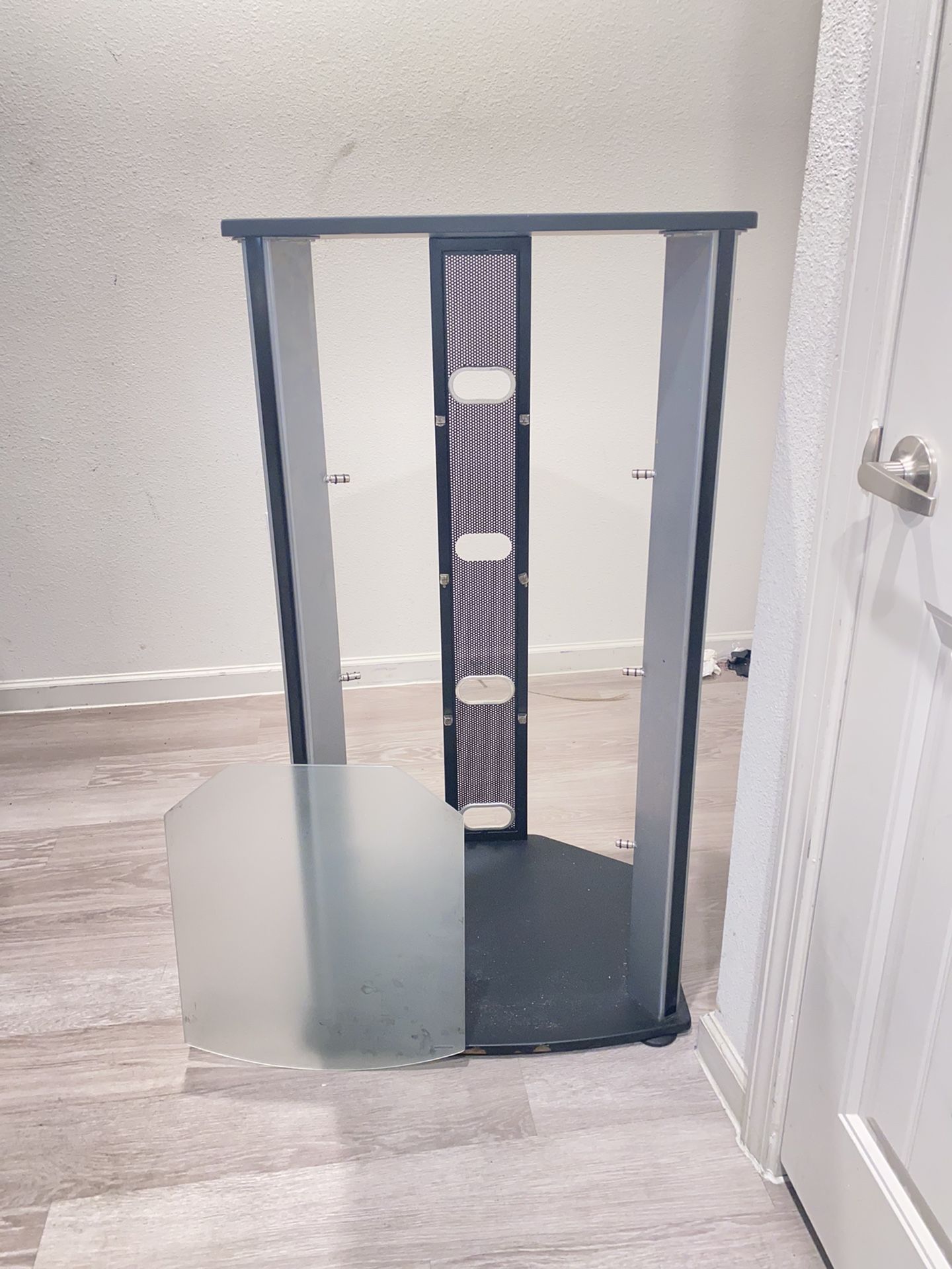 Tv stand with 3 glass shelves Hardly used - Stand is still in great condition 46” L 23” W 22” D