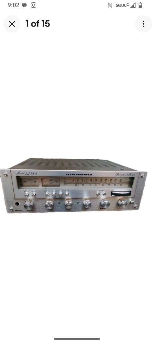 The Marantz 2238B Stereophonic Receiver is a vintage audio device known for its excellent sound quality and functionality. This receiver, made by the reputable brand Marantz, has been tested and is confirmed to be in working condition with all inputs properly functioning. Perfect for audiophiles looking to enhance their vintage stereo setup, the Marantz 2238B offers a classic design and reliable performance for a nostalgic listening https://offerup.com/redirect/?o=ZXhwZXJpZW5jZS5JdA== does have slight cosmetic issues a dong on corner faceplate refer to pictures antenna doesn't stay to bracket it's connect may need new antenna housing but reception works fine. .. Original components. Also has slight scratches hardly noticeable refer to pictures or ask us questions in the inbox we return fast before if your not sure about the item..