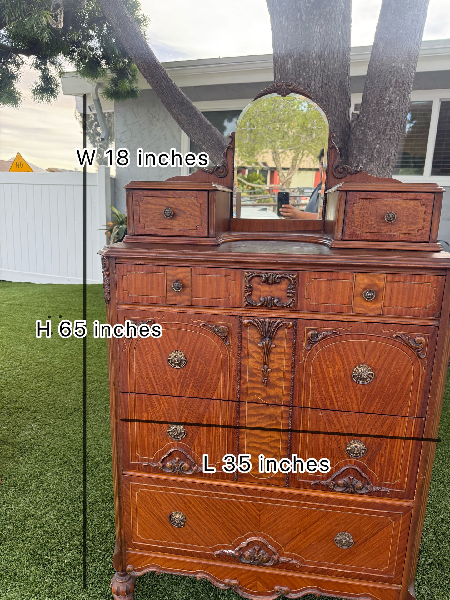 Antique chest of drawers (dressing table style) with its mirror