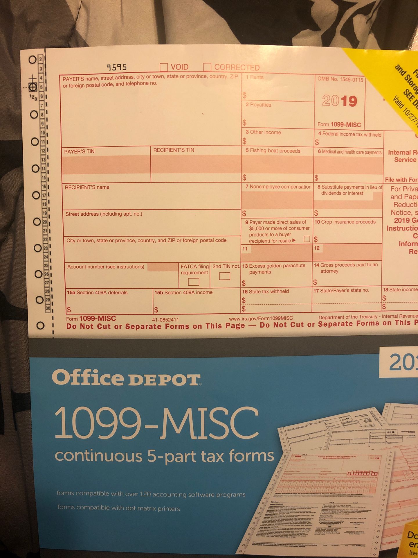 Forms available for 2019 (Ten) 1099-MISC forms available Each for $3 (Two)1096 forms available each for $3. Must pick not deliveries