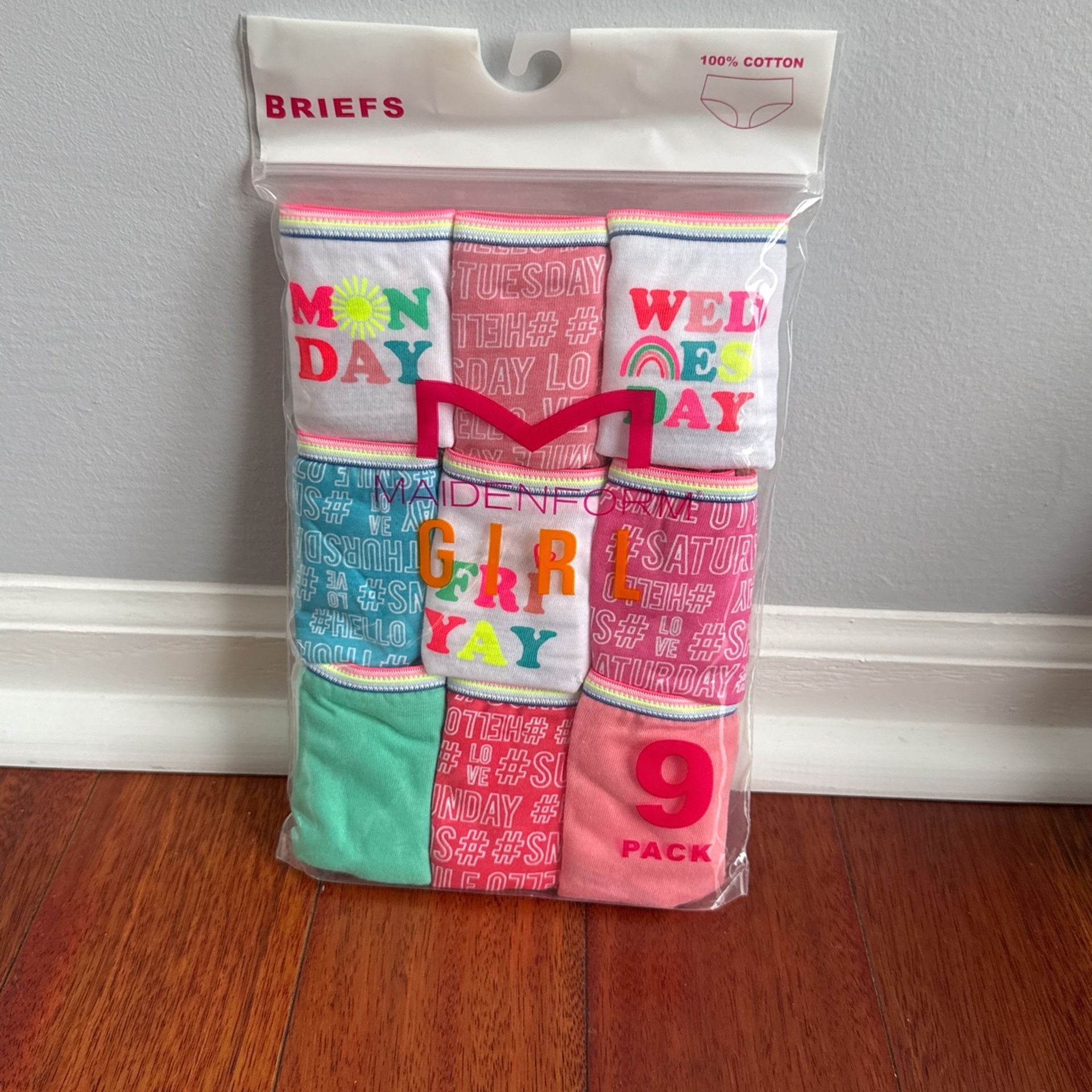 NEW Maiden form Girl Size 4 Briefs 9 Pack