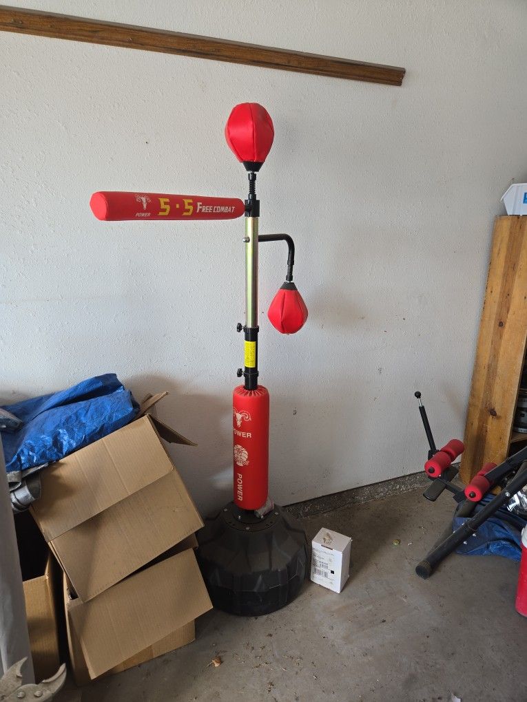 Reflex bar with liver and headshot bag and padded for leg kicks comes with all hardware and extra suction cups for inside gym