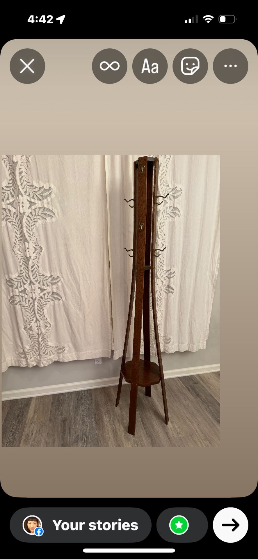 Adorable Antique Wood Standing Coat Rack Gorgeous Vintage Coat Hat Rack Price is firm Beautiful Condition Located in Irvine