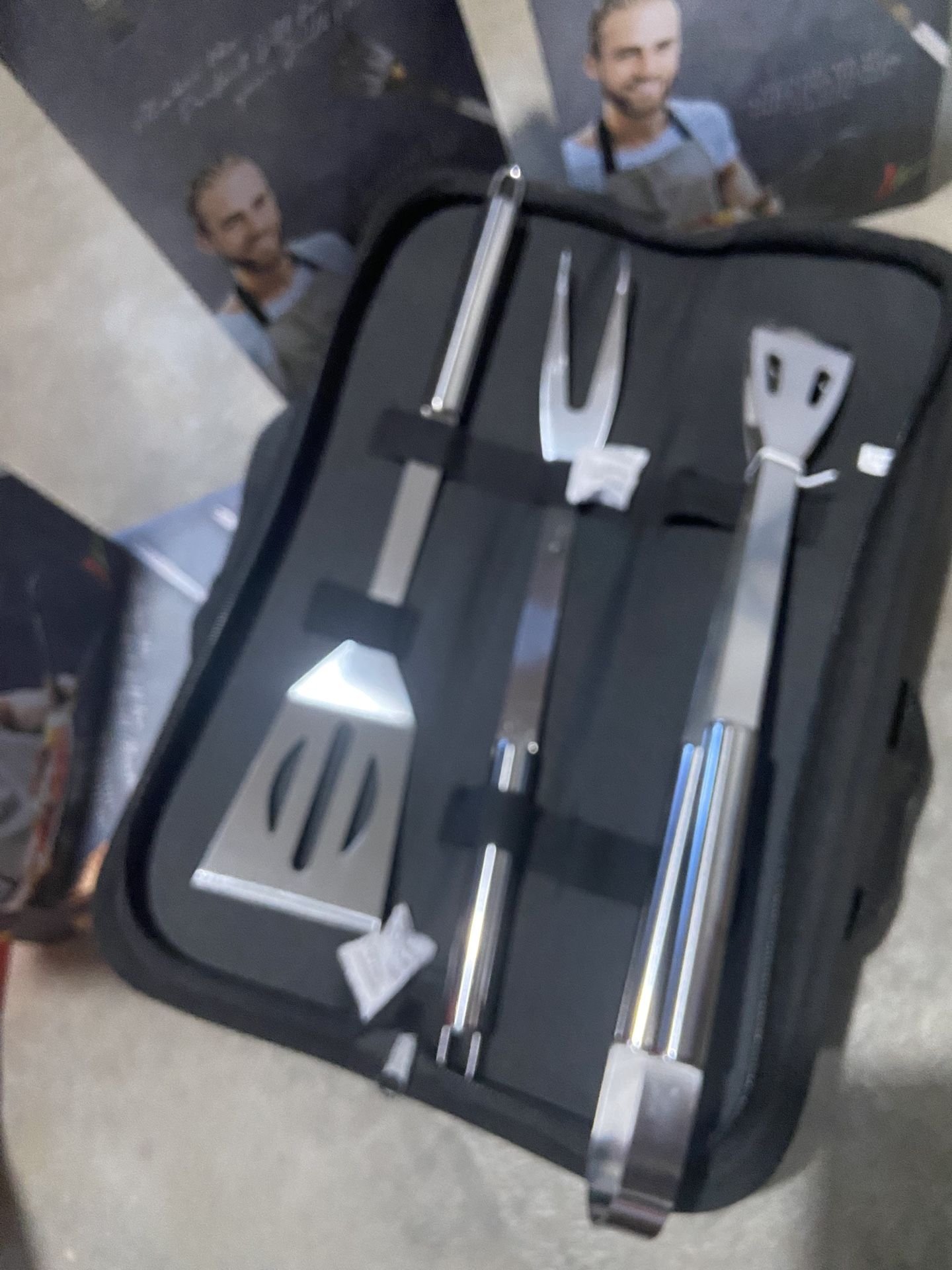 NEW 3 PIECE STAINLESS STEEL BBQ TOOL SET GRIIL TONGS VERSATILE SPATULA SUPERIOR FORK
