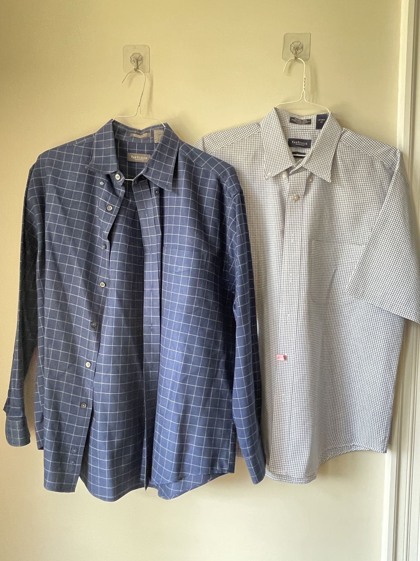 2 Pcs Van Heusen Checker Button Up Dress Shirt Size L 16/16 1/2 Mens
