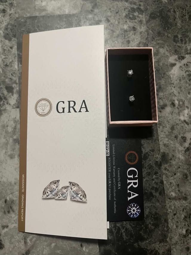 Real 925 silver with moisanite studs comes with GRA certification passes diamond tester I payed 300 for them only asking 200 will negotiate on price