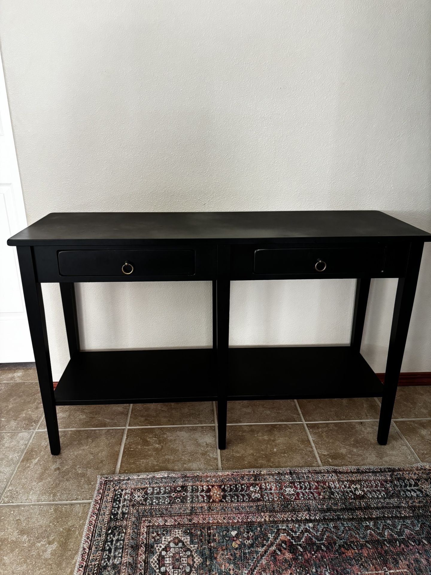 This has been the perfect little table for my entryway. Has a few light surface scratches. 47”x30”. Cash only