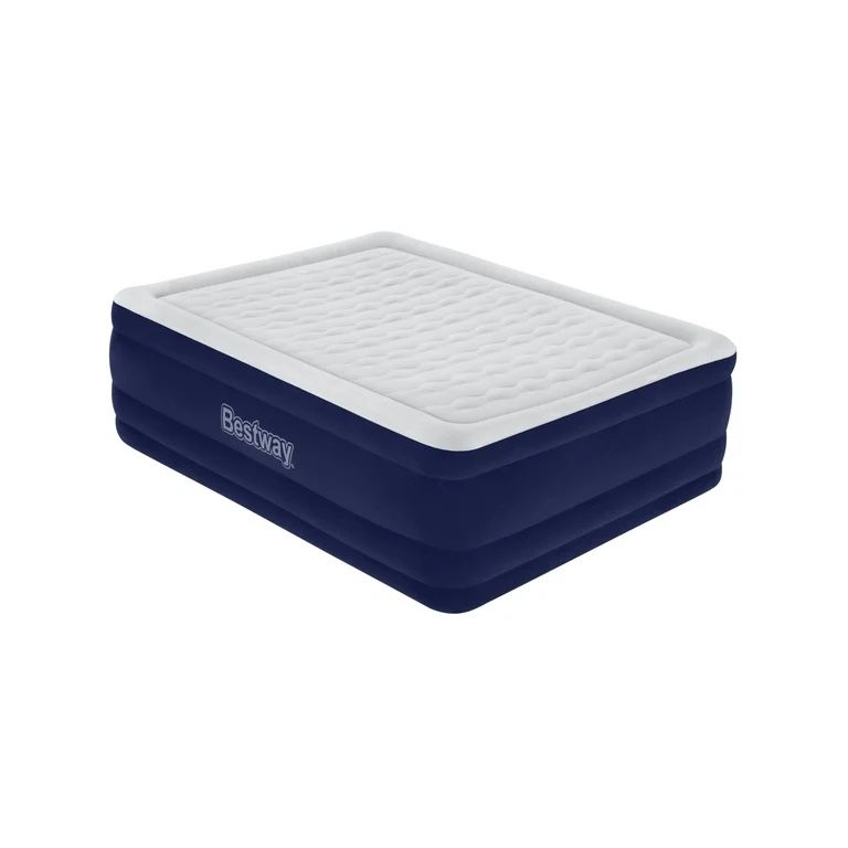 Bestway Tritech 24" Air Mattress Antimicrobial Coating with Built-in AC Pump, Queen Never used - Box Opened Size: 80 in. x 60 in. x 24 in. / 2.03 m x 1.52 m x 61 cm Queen Air Mattress - Fits up to 2 adults Built-in 110-120V AC pump inflates the bed in 4-5 minutes Durable Tritech™️ air mattress construction can withstand the stress, weight, and movement that come with a great night's sleep Ultra-Fresh™️ antimicrobial treatment is built-in to protect the product from the growth of odor-causing bacteria, mold, and mildew on the sleep surface The surrounding frame design prevents roll-off and increases comfort Comfortable flocked sleeping surface and sides Weight Capacity: 661 lbs (300 kg)