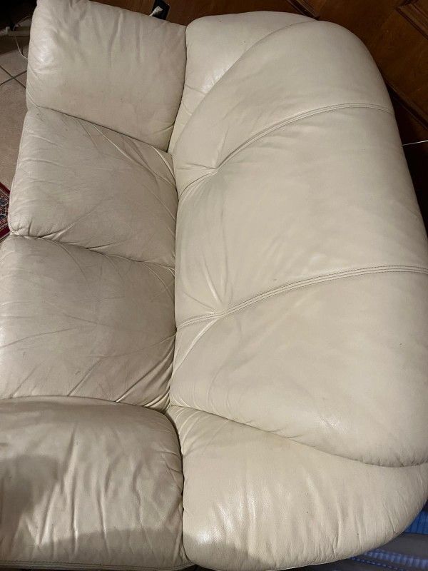 Italian white leather set. 2 piece - loveseat and chair. Smoke free, pet free home. $400 OBO
