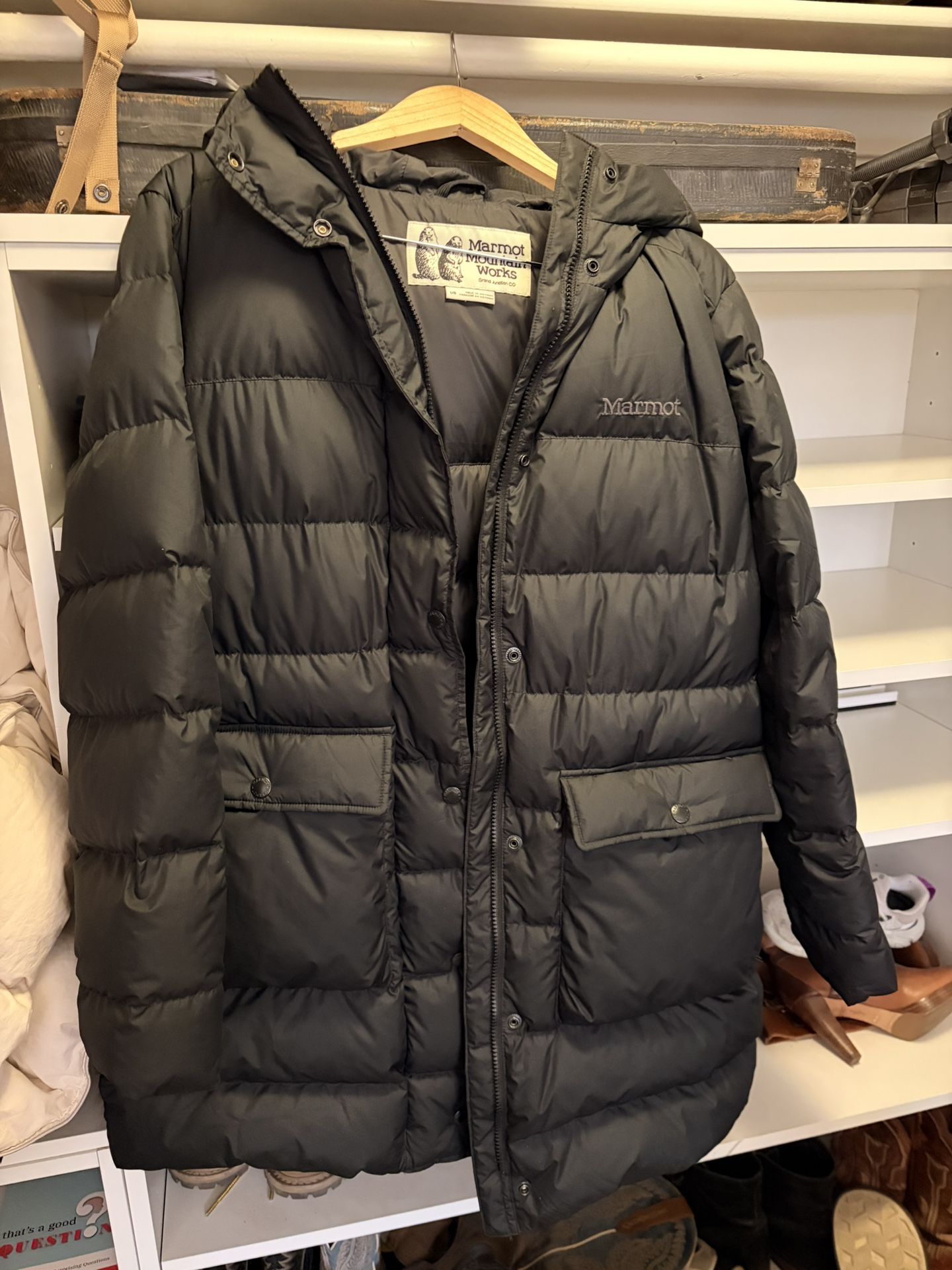 Used once Large MARMOT womens Strollbridge Parka Black. Super warm. It’s too big for me. Would definitely be a warm comfy coat for the cool weather.