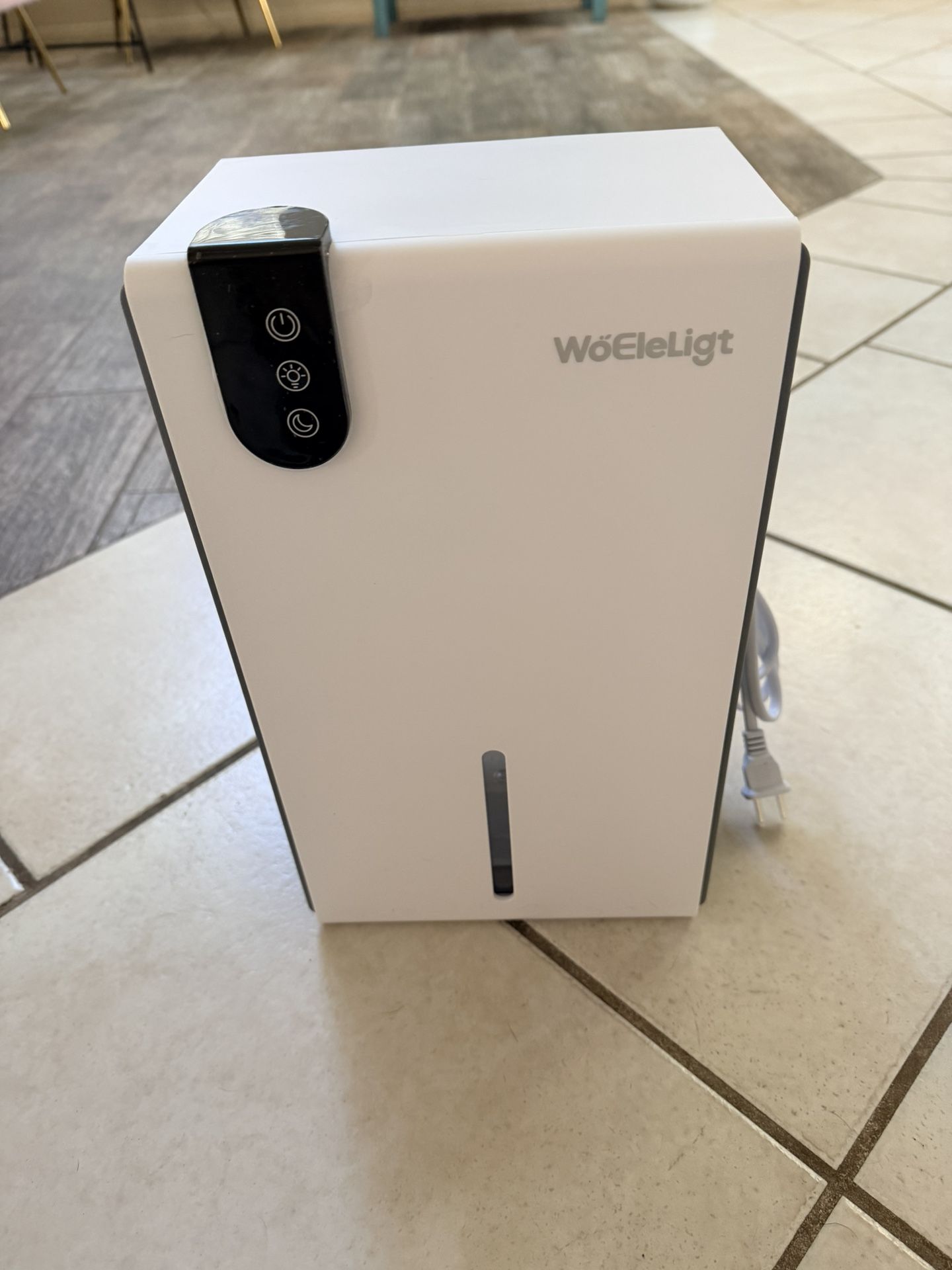 Brand new in box! {Upgraded Dual-Core Dehumidifier】Features advanced dual-core semiconductor technology for efficient moisture removal. Best used in closed rooms to maintain performance. Keeps indoor air dry and comfortable—ideal for small spaces up to 1,000 sq. ft., including bedrooms, bathrooms, closets, basements, home and RVs. 【High-Power Mode + Whisper-Quiet Sleep Mode】Two modes for flexible use. High-Power Mode quickly removes moisture from damp bathrooms, laundry areas, and basements, reducing sticky air and musty odors. Sleep Mode operates at under 30 dB for quiet nighttime use in bedrooms or nurseries. One-touch switching makes operation simple and user-friendly. 【Auto Shut-Off & Dual Drainage】Automatically powers off with a red warning light when the tank is full or improperly placed, preventing overflow. Empty manually or connect the included drain hose for continuous drainage, ideal for 24/7 operation in bathrooms, basements, or during rainy seasons without constant supervision. 【7-Color Ambient Night Light】Built-in LED night light offers 7 colors to create a warm, relaxing atmosphere. Lock your favorite color, let it cycle automatically, or turn off the light when not needed. Perfect for bedrooms, nurseries, kids’ rooms, or bathrooms, adding both functionality and ambiance without disturbing sleep. 【Compact & Portable for Any Room】Lightweight at only 5.3 lbs with a built-in handle for effortless portability. Compact size (8.3" x 5.7" x 14") saves space while covering up to 1,000 sq. ft. Sleek design fits bedrooms, bathrooms, closets, dorms, apartments, and RVs. Move it easily for targeted moisture removal—perfect as a small room dehumidifier, quiet dehumidifier, or portable moisture remover.