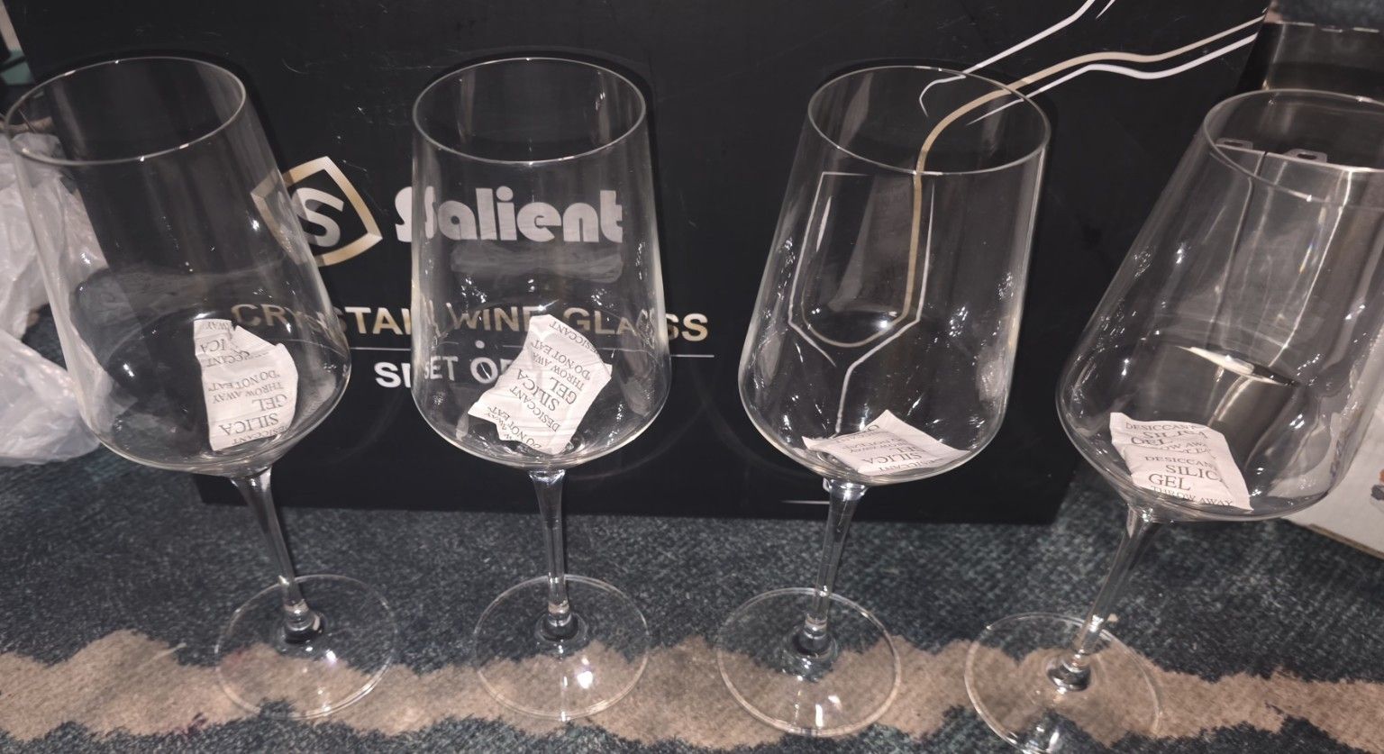 Beautiful, modern crystal wine glasses by Salient. This set has never been used and is in excellent condition. Clean, lightweight design with a comfortable stem and a nicely shaped bowl—perfect for red or white wine, entertaining guests, or upgrading your glassware at home. Set of 6 wine glasses Crystal glass Elegant, modern design Lightweight but sturdy Never used No chips, cracks, or flaws