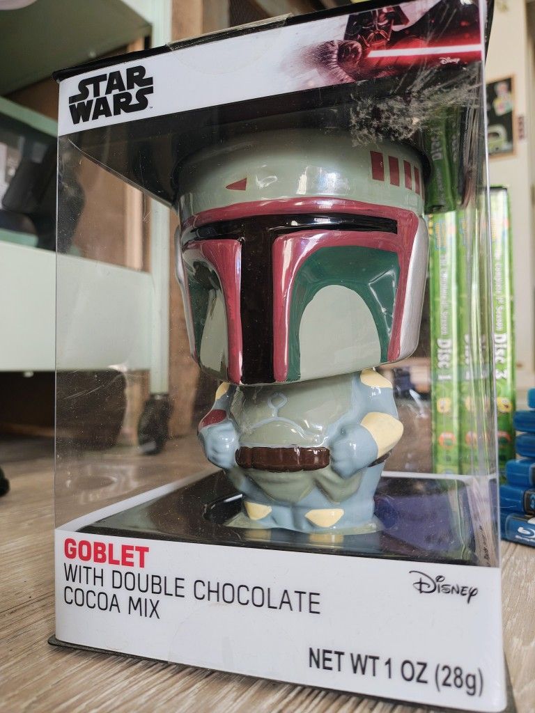 Boba fett goblet with hot chocolate mix.... Never opened.... But not gonna lie, not sure if eat the cocoa lol. $5