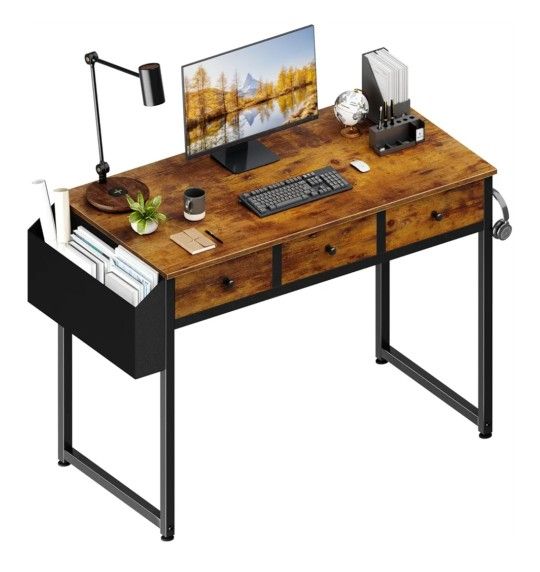 Computer And Vanity Desk: Dimension is 39.4'' L x 19.7'' W x 31''H , short desk, space saving, great for student teens kids writing desk for bedroom or adult home office workstation. It is also a very good choice as a dressing vanity table with drawers. The desk is USPTO Patent Approved. Vintage Style Design: Computer desk with 3-tier open fabric drawers with wooden front for storage, providing plenty of room for under-desk storage and organization. This splice board desk is made of thick P2 particle wood board with scratch-resistant, anti-collision and waterproof, protect home office desk surface from daily wear and tear. Sturdy Structure: Extra fixed steel brackets and adjustable leg pads provide greater stability, ensure the desktop is level, non-slip & anti-scratch protectors under the legs to protect your floor from scratching and reducing noises when moving. Easy Assemble: A detailed instruction manual and tool are provided, no other tools required, quick and easy to assemble, about 20 - 30 minutes. SRW