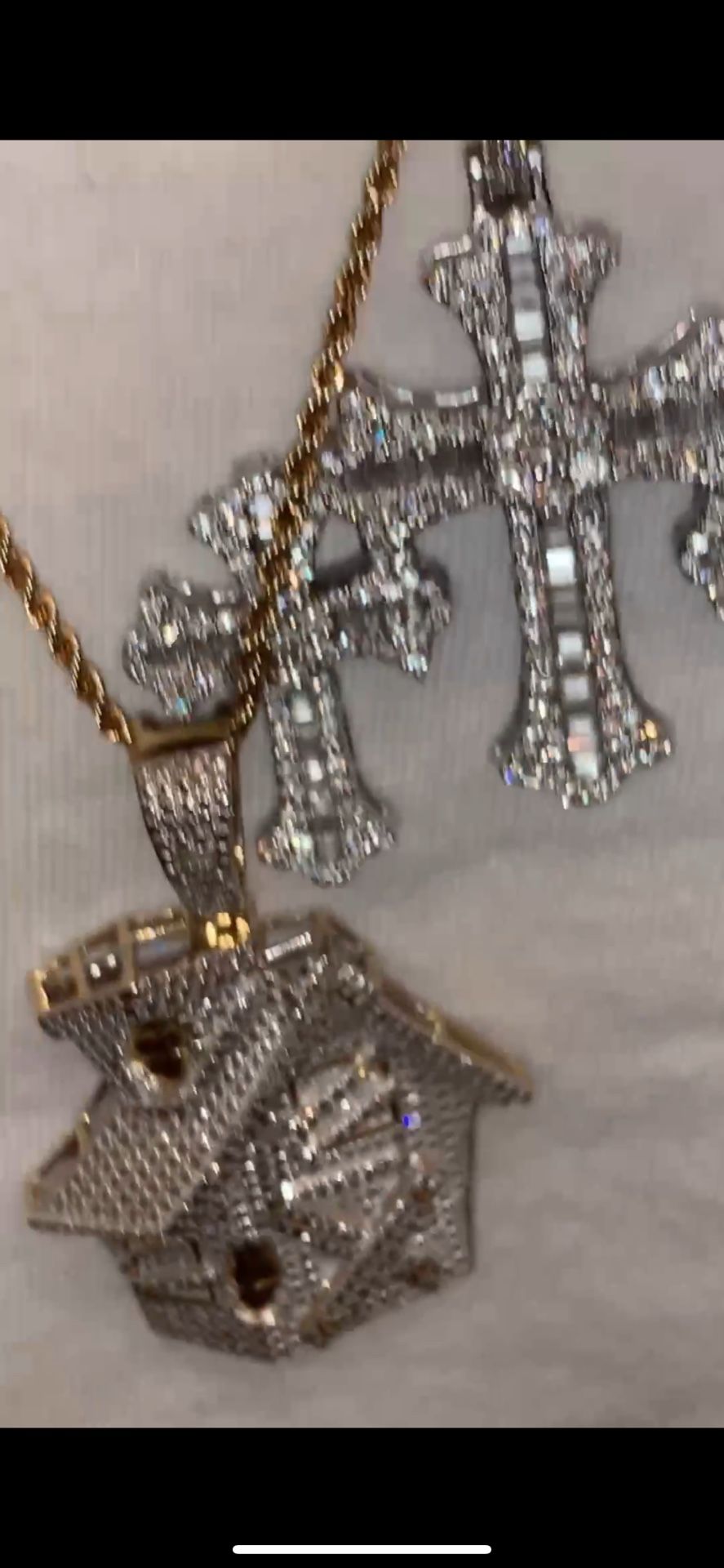NEW TRAP HOUSE VVS PENDANT‼️triple cross charm are lab grown diamonds & both chains solid gold 10k