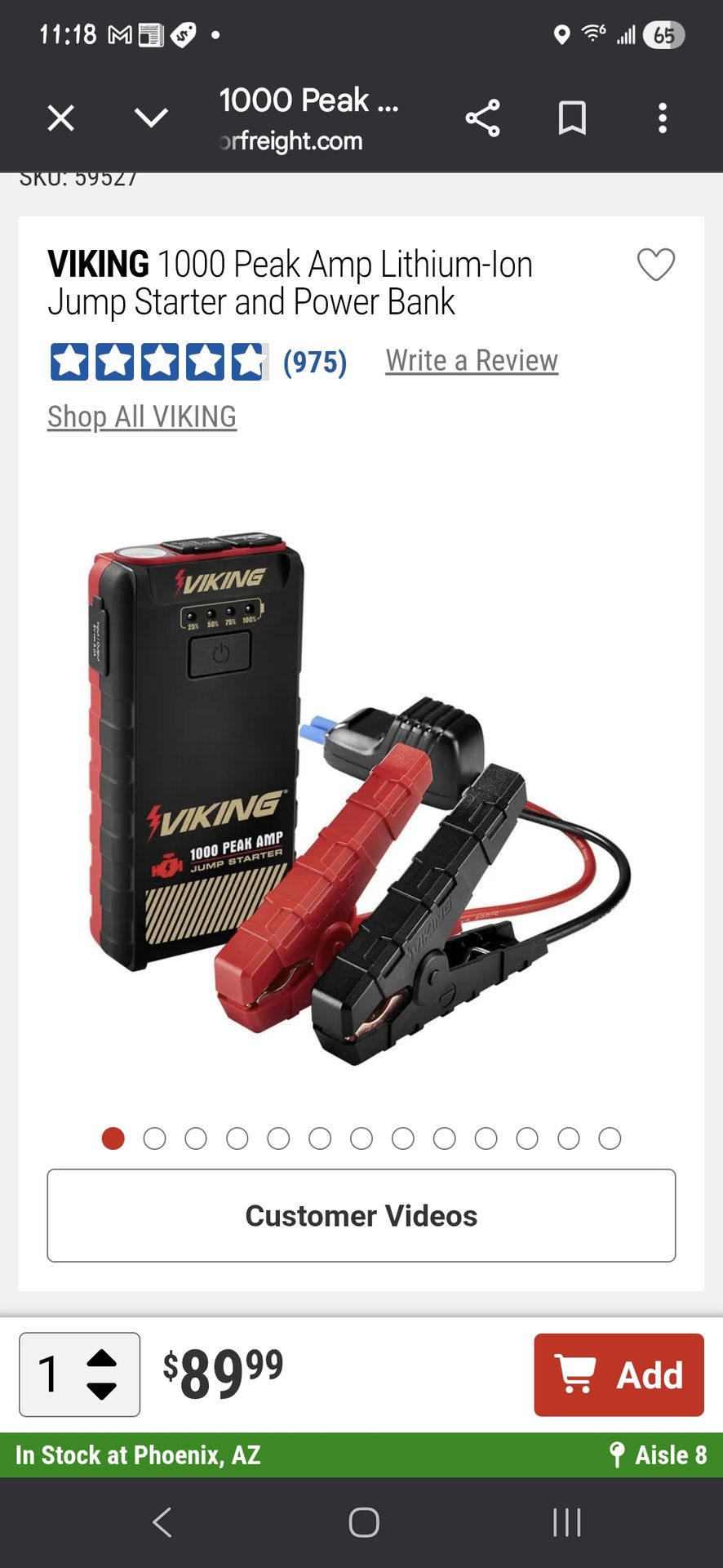 Viking lithium ion starter and power bank 1000 amp. Brand new