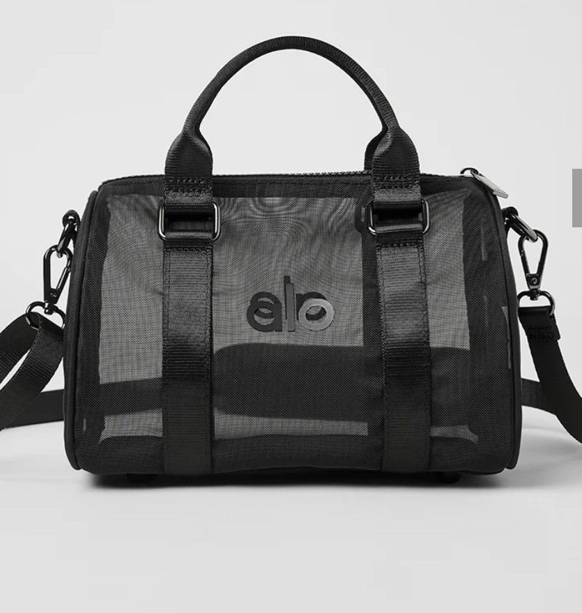 Mini Sheer Duffle DESCRIPTION SMALL ENOUGH TO CARRY EVERYWHERE BUT SPACIOUS ENOUGH TO FIT A DAY’S WORTH OF ESSENTIALS (WALLET, PHONE, SUNGLASSES, BOOK), THIS BAG CHECKS ALL THE BOXES. IT’S MADE FROM SOFTLY STRUCTURED, SEMI-SHEER MESH AND HAS A FLAT BOTTOM TO PREVENT SAGGING OR SLOUCHING. DON’T MISS THE TOP ZIPPER, TOP HANDLES, AND ADJUSTABLE, REMOVABLE SHOULDER STRAP FOR EXTRA FUNCTIONALITY. FIT * 9” X 3” X 5.5” * CROSSBODY STRAP AT ITS LONGEST: 52” FABRICATION * See-through, structured material * 100% Nylon