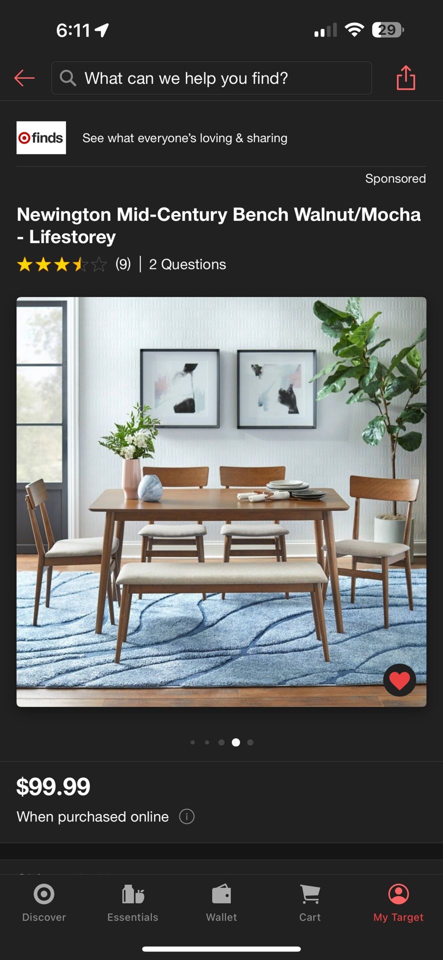 Newington Mid-Century Bench Walnut/Mocha - Lifestorey Only put together about 2 months ago and never used.