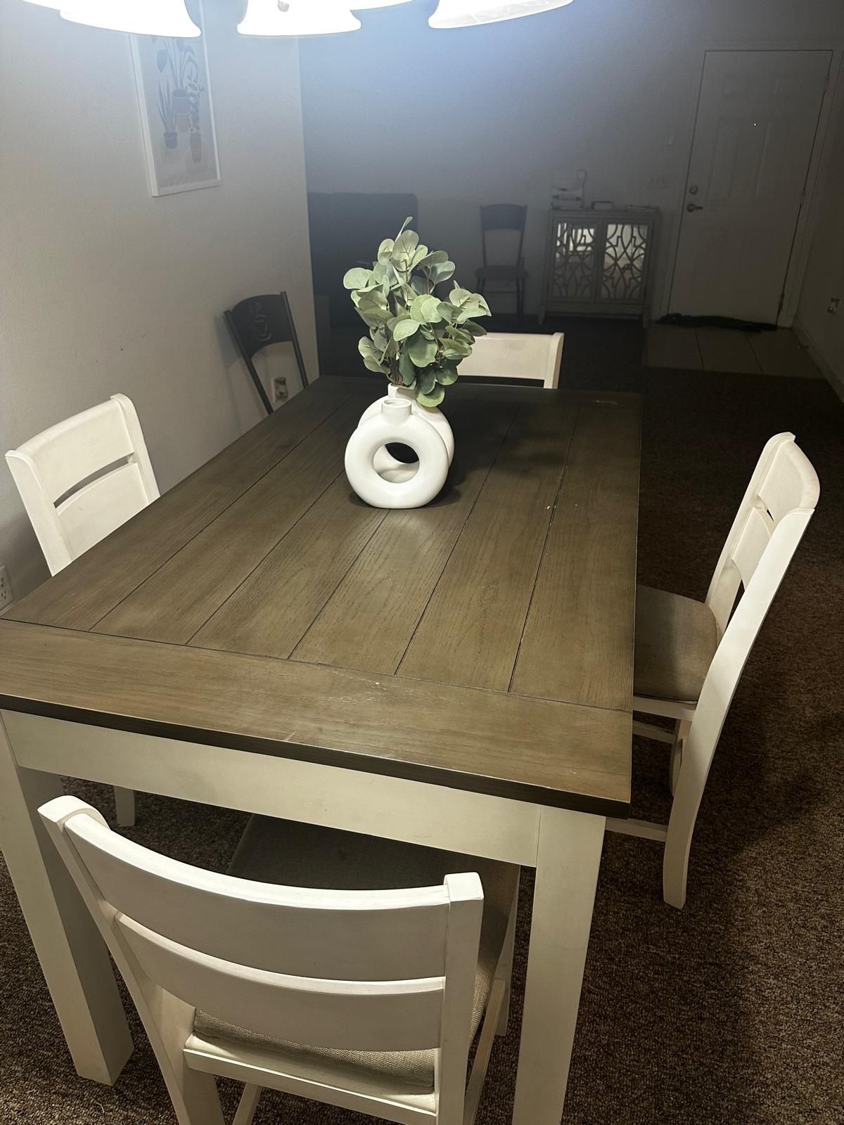 One-year-old table with four chairs. No scratches. Lenght 5 ft or 60 inches 3ft or 36 inche widht