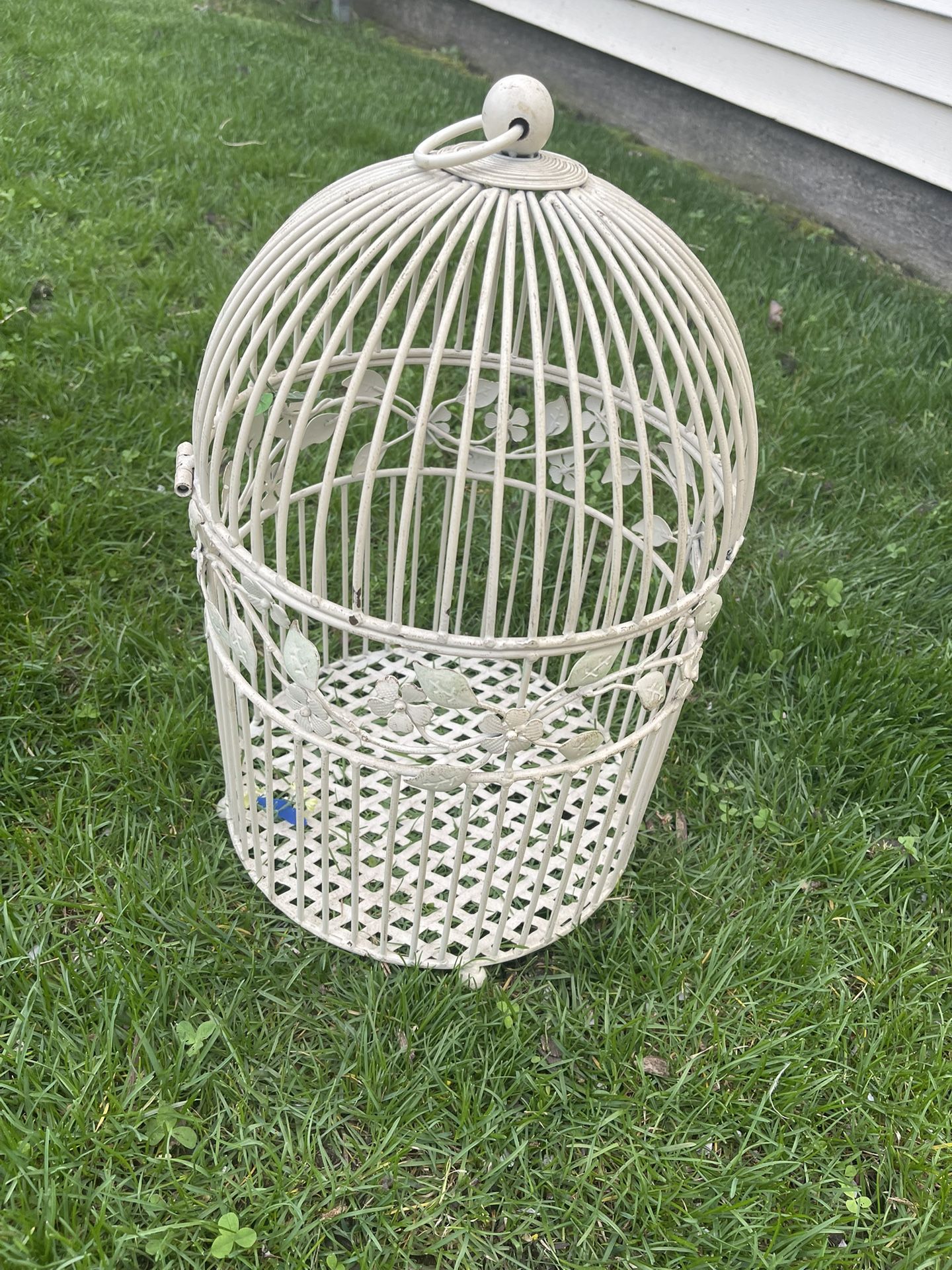 Beautiful vintage metal birdcage. Opens from the top. Nice decorative display for flowers or candles.