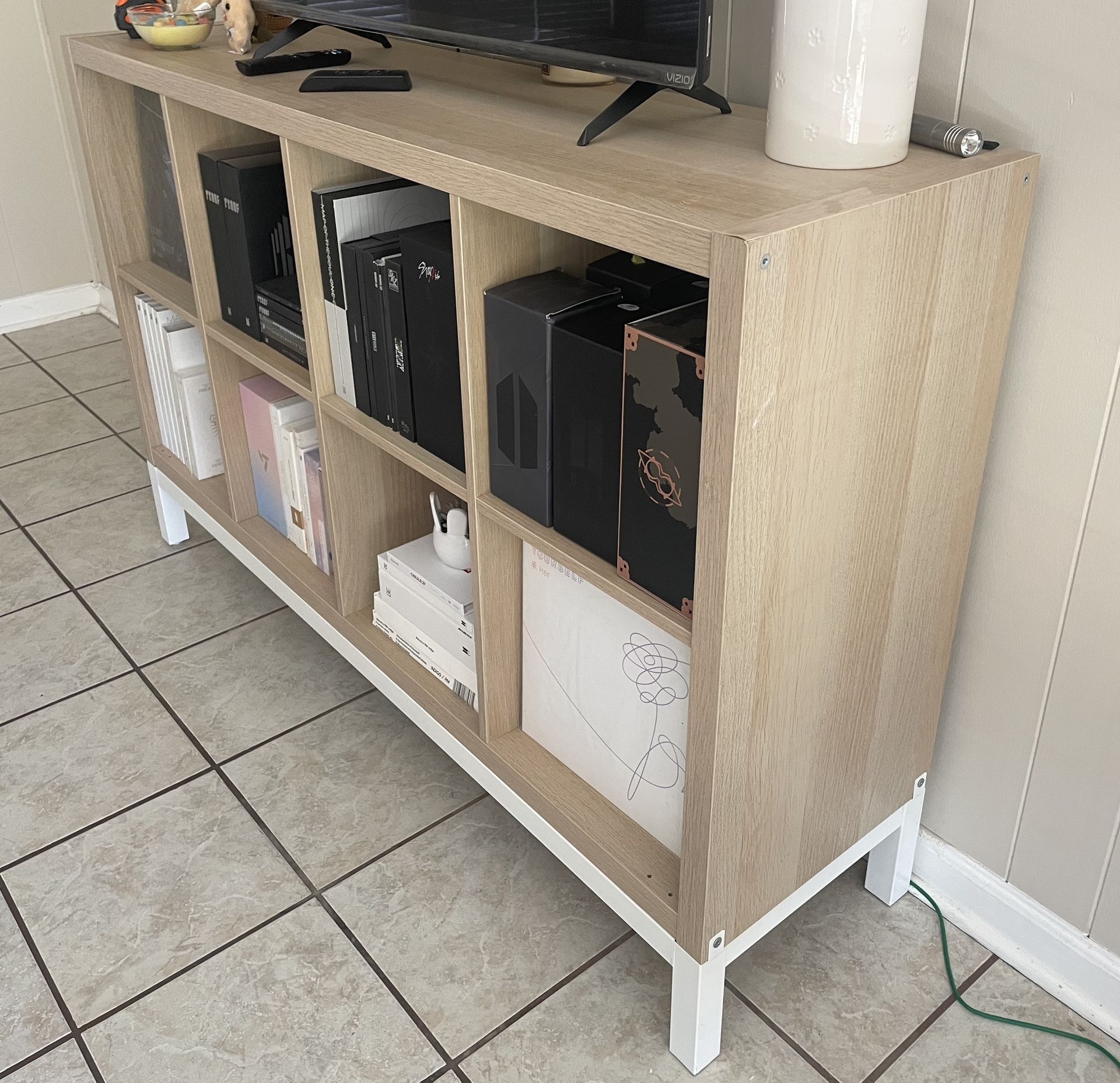 Porch pick up at Green Trail Dr Houston Tx 77038 on Veterans Memorial near beltway and 249 KALLAX book shelf Shelf unit, white stained oak effect, 30 1/8x57 5/8” BASE INCLUDED Kallax base Base on legs, white, 57 1/2x15 3/8x7 1/8 " Can be displayed vertically or horizontally. Gently used. ONLY THE BOOKSHELF AND BASE IS BEING ADVERTISED. THE ALBUMS, DECOR, AND TECH ARE INCLUDED FOR SALE The last two pictures are visuals on how you can position this item