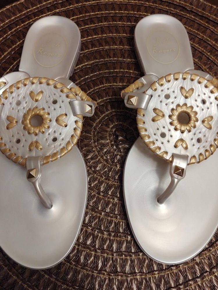 Jack Rogers Jelly Sandals Silver Gold Size 6