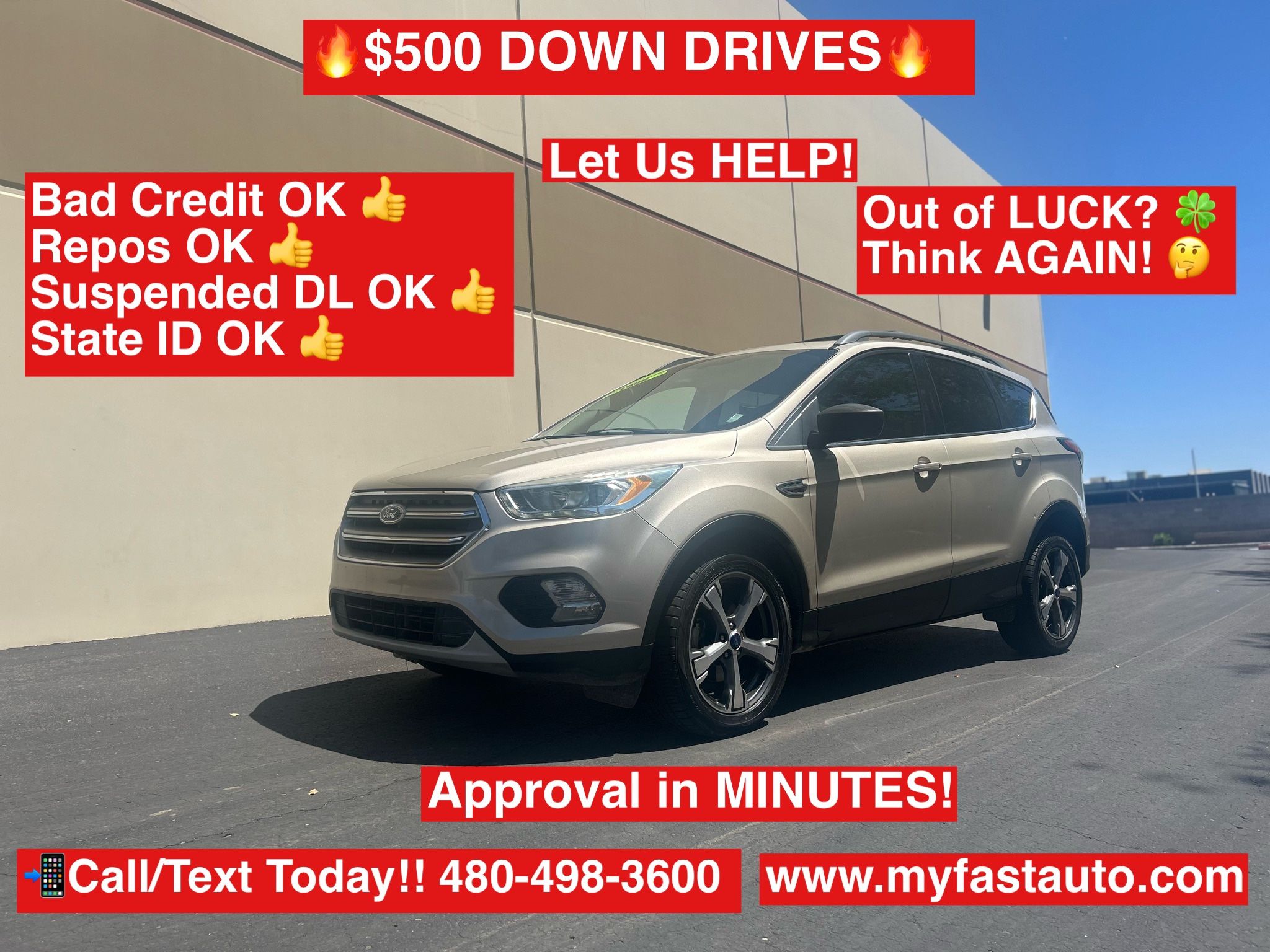 📞Call or Text 480-498-3600 or 🚘Apply Online at www.myfastauto.com 🚗Need a car today? Your Approved! 👌Bad Credit? No Credit? We Approve You!👌 💲Low Down Payments From $999 Delivers. ✅State ID or Suspended License OK ✅OLD REPOS or Bankruptcies OK! 🔥 1Year / 24,000 Mile Warranties Available. 🚀WHAT YOU NEED TO DRIVE TODAY🚀 ⏩ID or DL ⏩Most Recent 2 Paystubs ⏩Proof Of Residence ⏩Down Payment ⏩Full Coverage Insurance