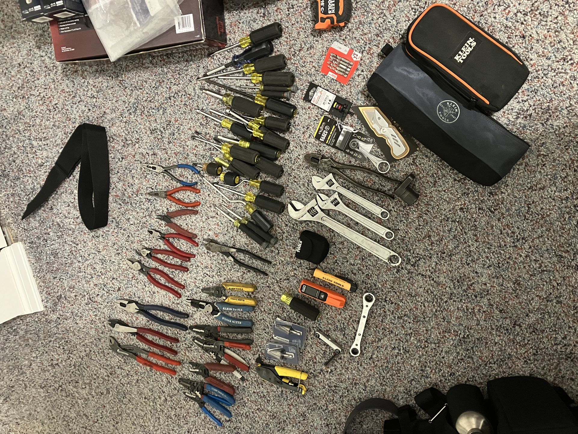 Everything pictured is what I got A lot of Klein tools Snap on hammer Snap on bag Some new, some used Let me know why you need and we can talk price Can sell separately or all together