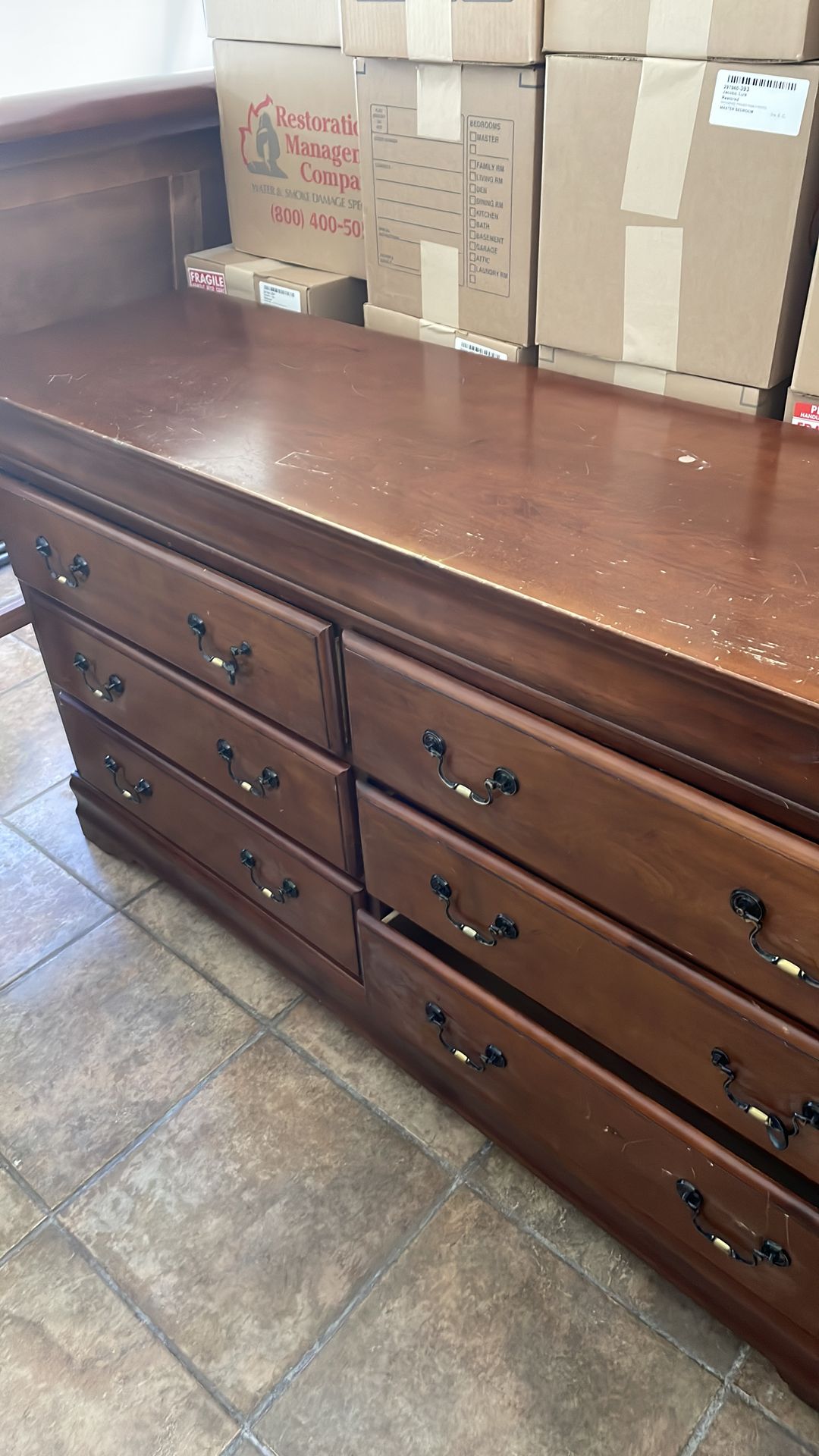Queen sleigh bed/ dresser/end table/ mirror