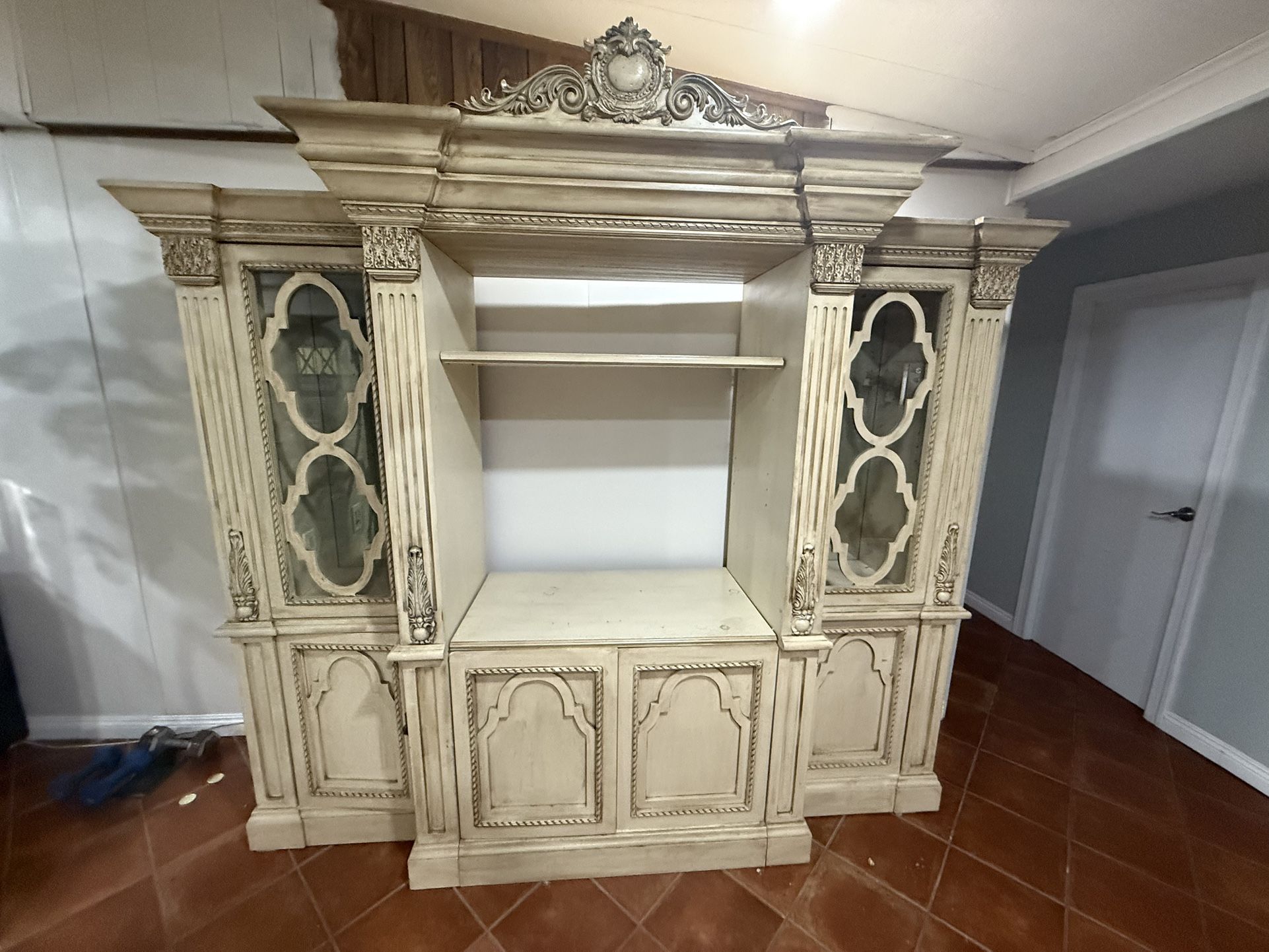 Custom cabinet, Wood, not MDF Great condition, minor touch up’s needed, can be disassembled to go Comes with glass shelves as shown in last picture Need to get rid for more space, retail on the piece was around 5k around 10-15 years ago Feel free to ask any more questions, Pick up in sylmar Furniture Shelve Bookshelves Living room Bedroom