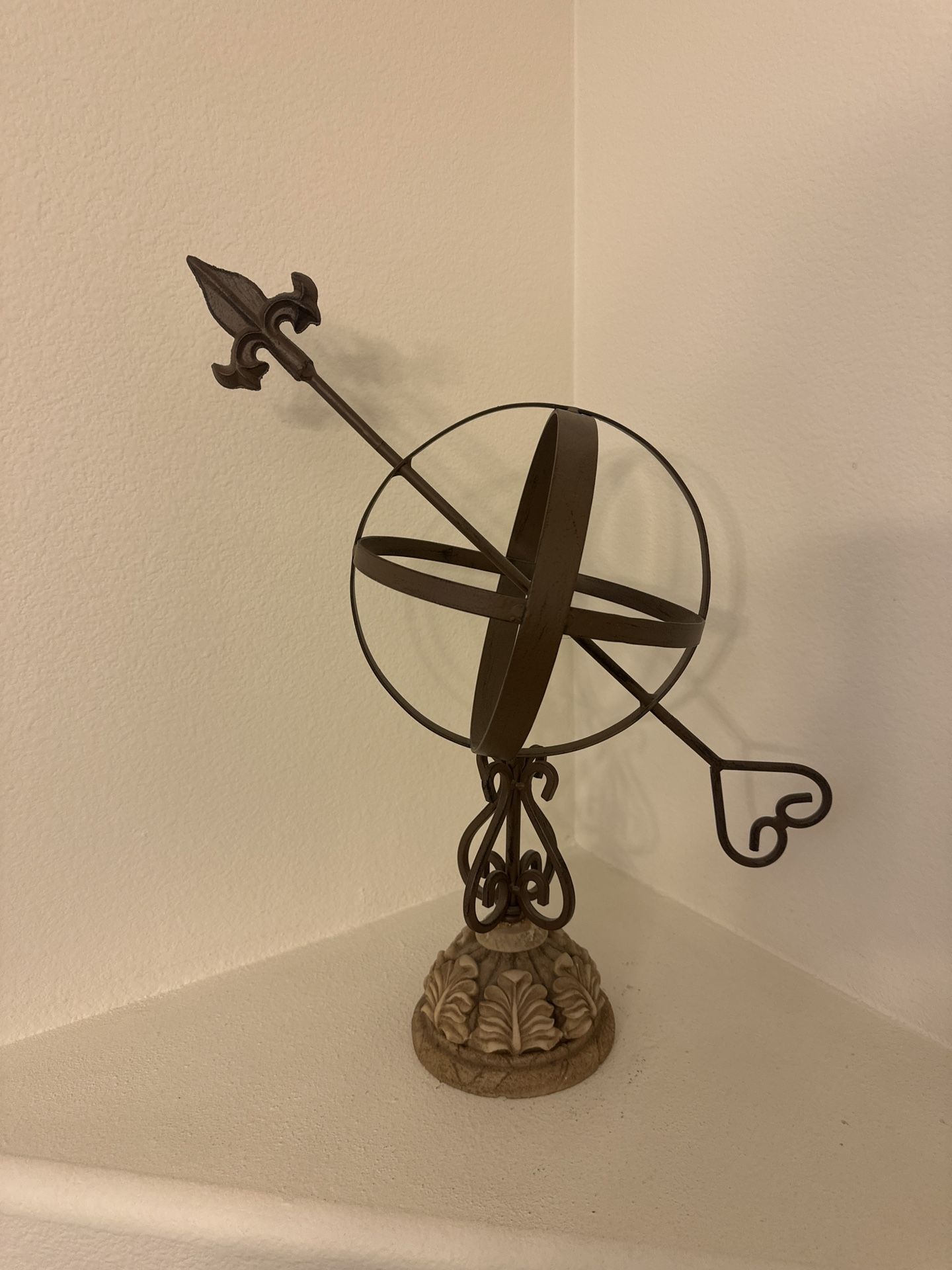 Metal armillary sphere with ornate base. Nothing wrong with it.