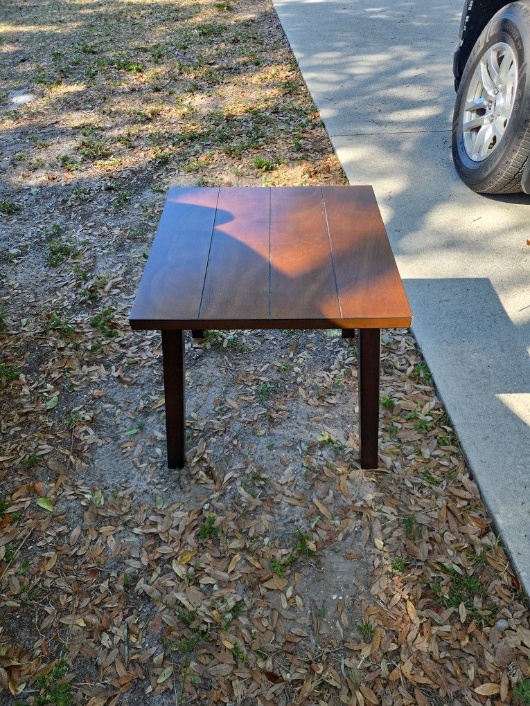Wooden square table, some scratches, 23 inches high and 23 1/2 " width.