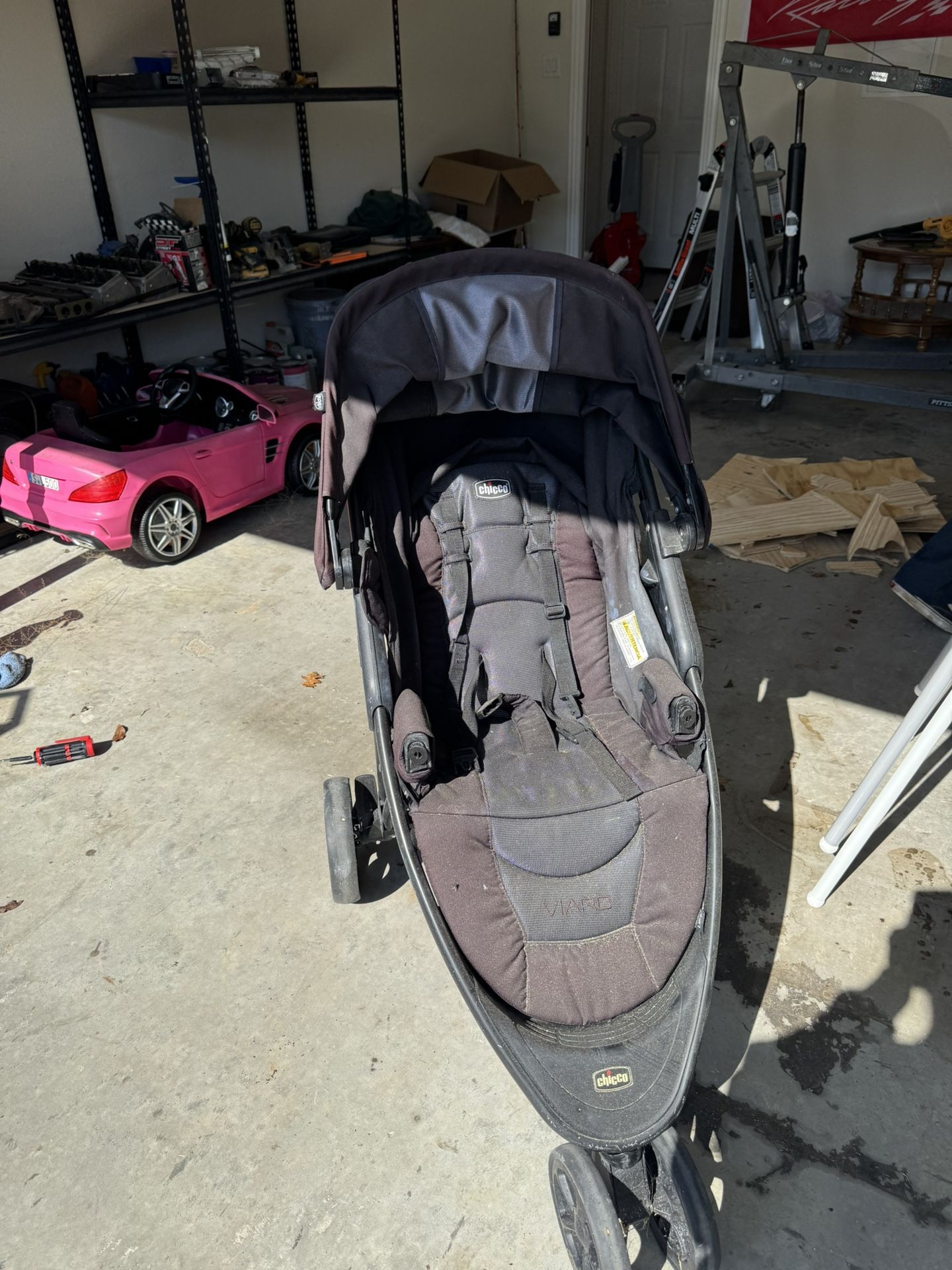 Used Chicco Viaro stroller in good working condition. It’s a bit sun-bleached but everything functions like it should — folds smoothly, wheels roll well, and brakes work. The hanging toy in the photo isn’t included. Clean and ready for pickup in Pilot Point – $35 I also take Zelle.