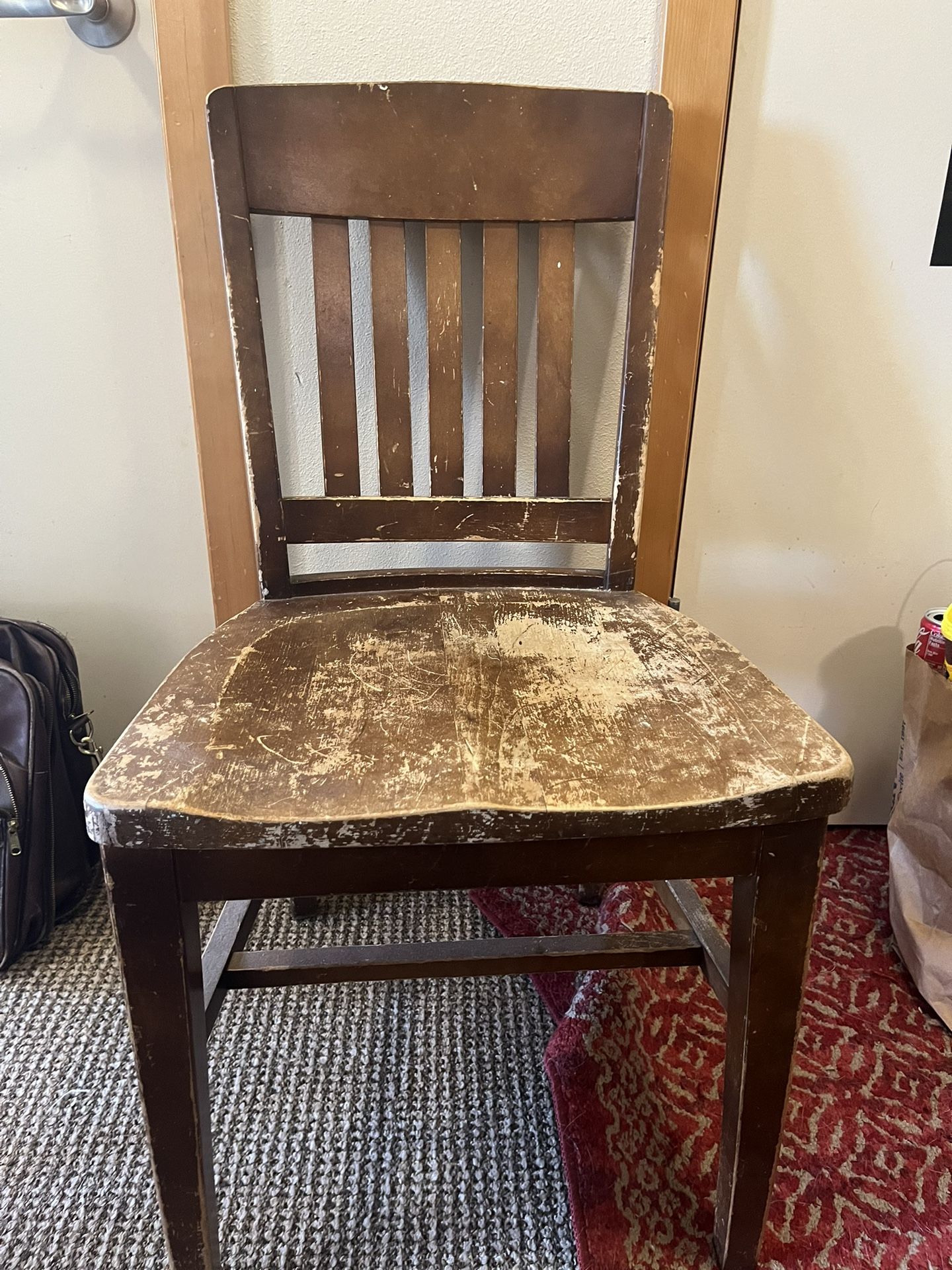 Solid wood schoolhouse chair. Vintage/normal wear.