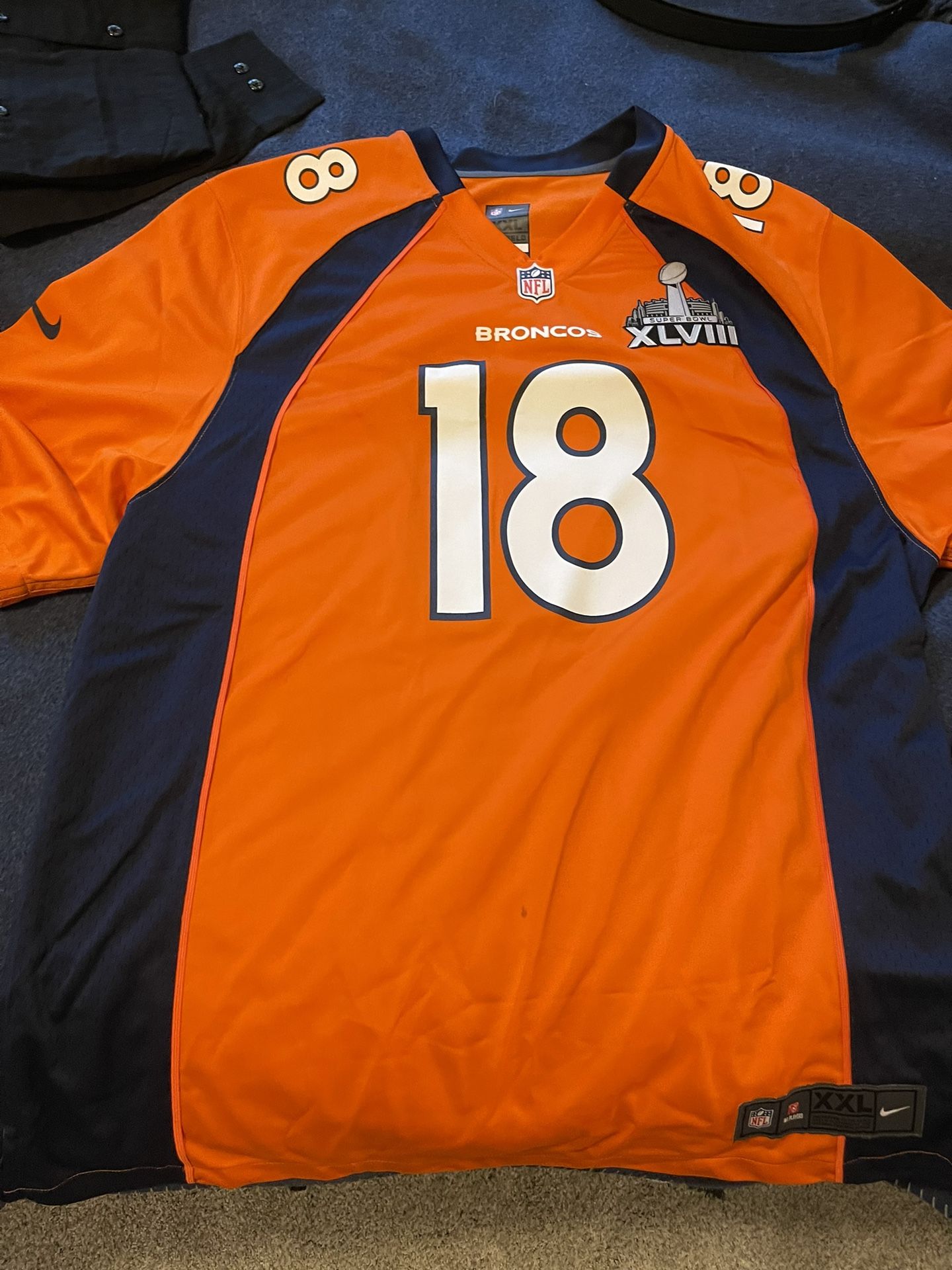 Super Bowl XVIII Logo Broncos 18 Manning XXL Jersey.