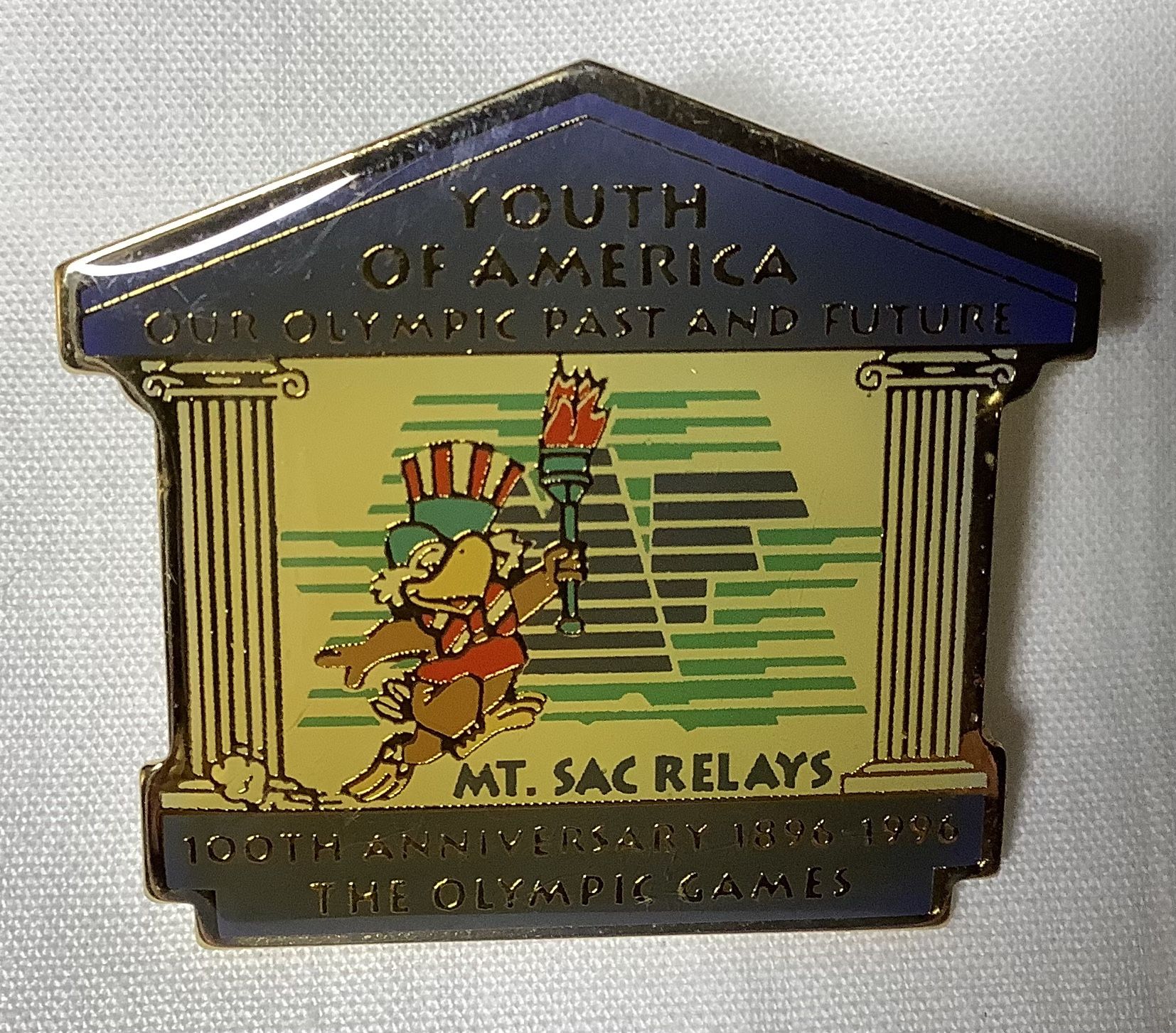YOUTH OF AMERICA MT. SAC RELAYS 100th ANNIVERSARY PIN THE OLYMPIC GAMES