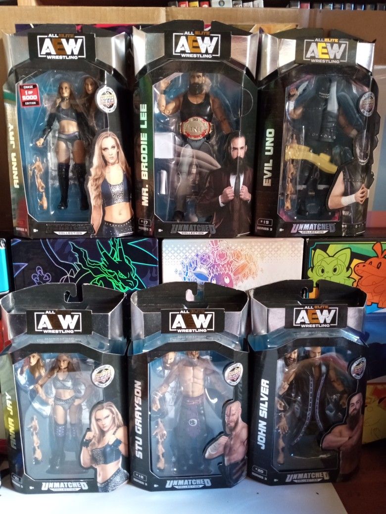 You will be receiving all six of the aew dark order figures shown including the chase of Anna Jay these are all new in the package with a little bit of shelf wear from being on display so please refer to the pictures provided and shipping is available through my eBay page thank you for looking