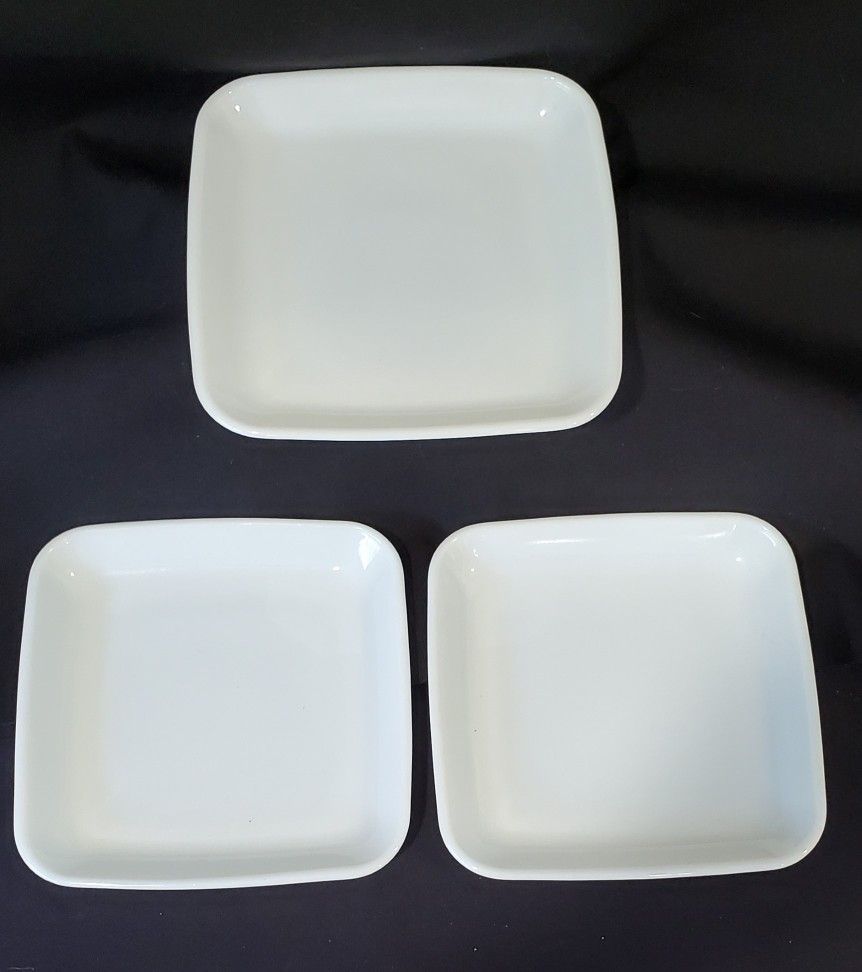 These small white dishes are perfect for the little things, appetizers, and desserts. These white dishes match any pattern. 3 square white dishes 6.5 x 6.5 in 2 oval white dishes 7 x 5 in 1 oval 5.5 x 4.5 in