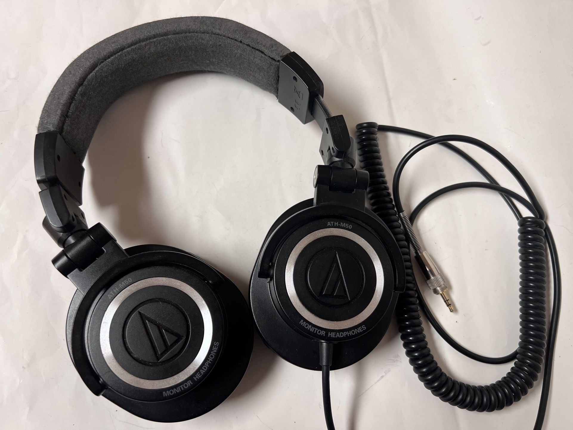 If you read this posting, the headphones are available. Pick up in Pleasant Hill. Audio Technica Professional Monitor Headphones ATH-M50. They are in good condition with not much wear. The ear pads are in very good condition. The headband plastic cover had some aging cracks and was totally removed. The headphones work perfectly with great sound. The cord had never been over stretched. A 3.5mm to 6.5mm plug adapter is included. If you read this posting, the headphones are available. Lowball offers will be ignored.