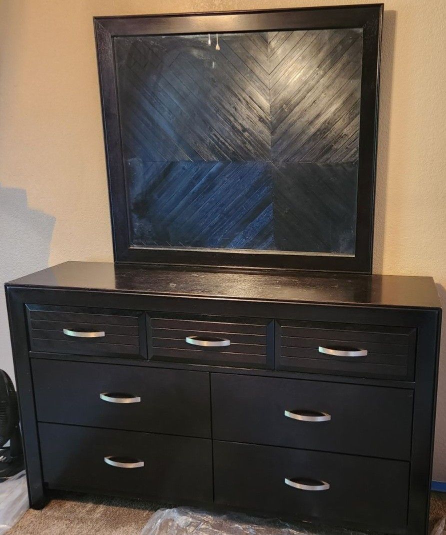 Queen bed frame, Dresser and mirror, night stand Will consider selling it in pieces. Dresser and Mirror- 175 Bed Frame with head board and foot board-100 Night Stand-50