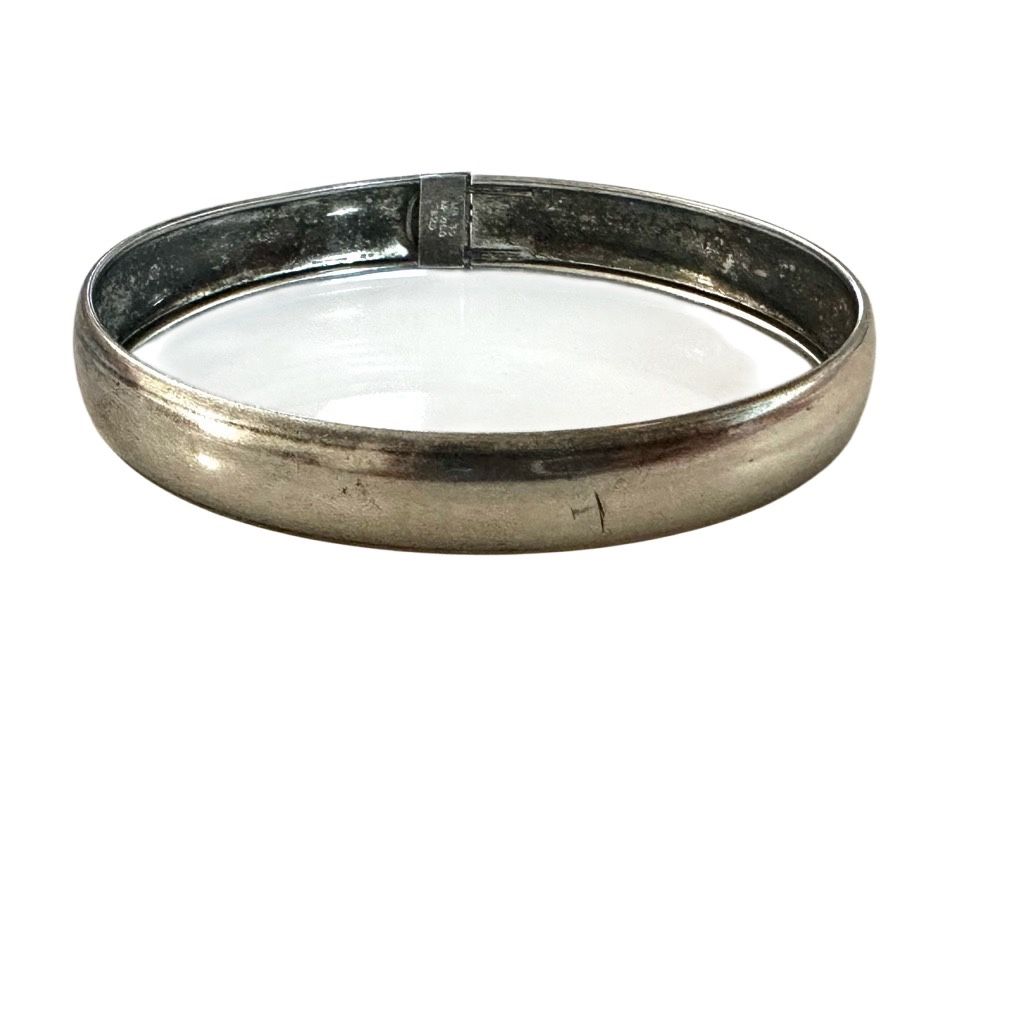 Sterling silver Vintage bangle bracelet Has some wear - but still has a lot of life left Stamped Good vintage condition Safety clasp Very open to reasonable offers - I always try to accept offers or counter or work with you on an amount that works for both of us :) Check out my other listings - lots of jewelry!