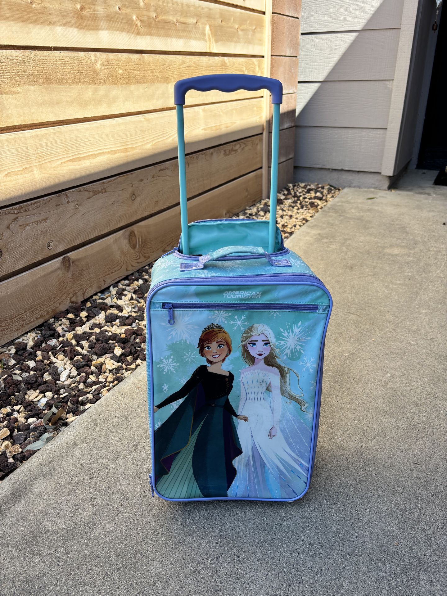 Frozen suitcase roller bag for carry-on. American Tourister brand. Rolls and zips well. Pickup in Poway