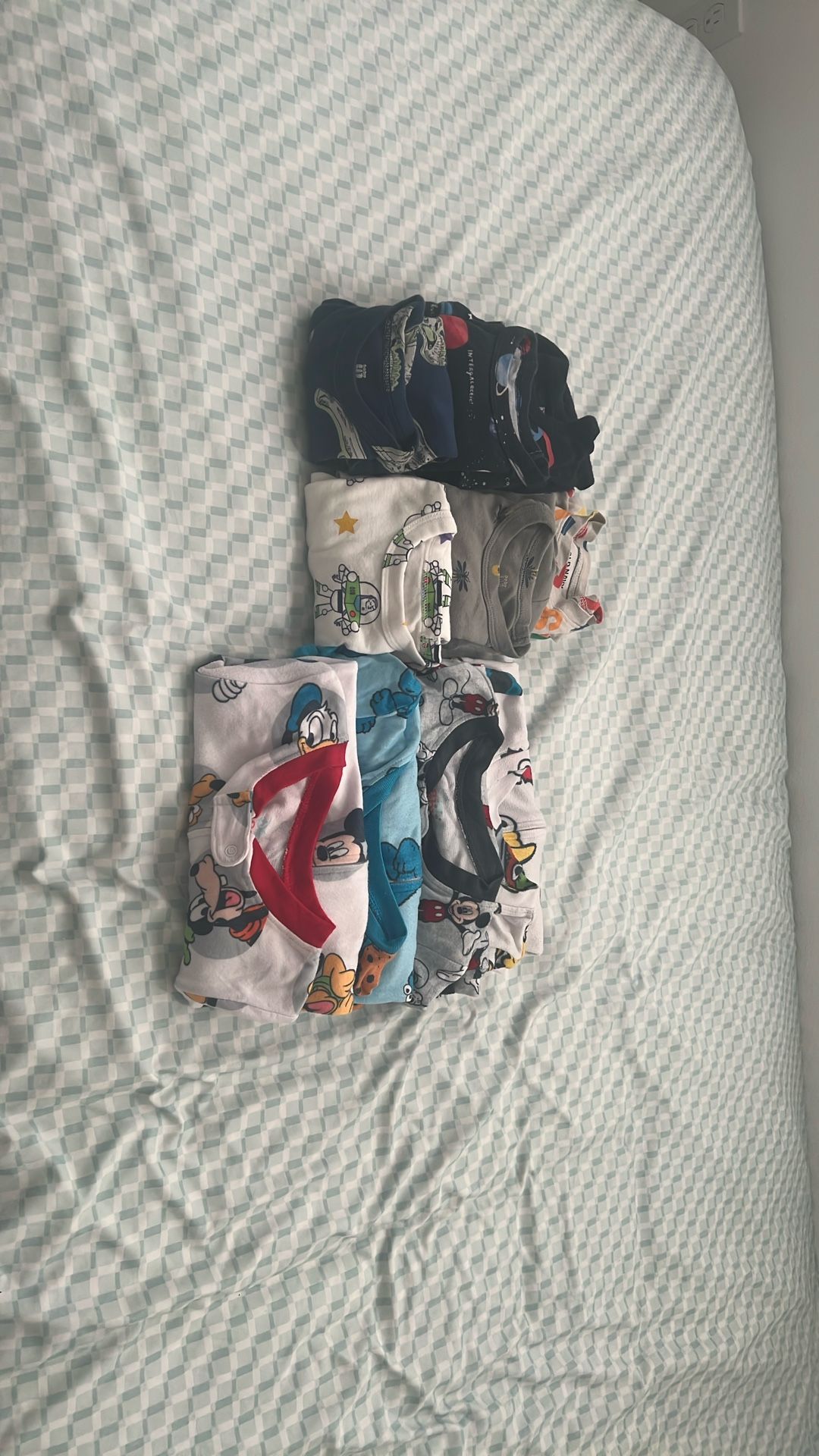 Baby Pajamas - 6 Shorts Sleeves, 4 Sesame St , Mickey Onesies- 12-18 Months, 24 Months