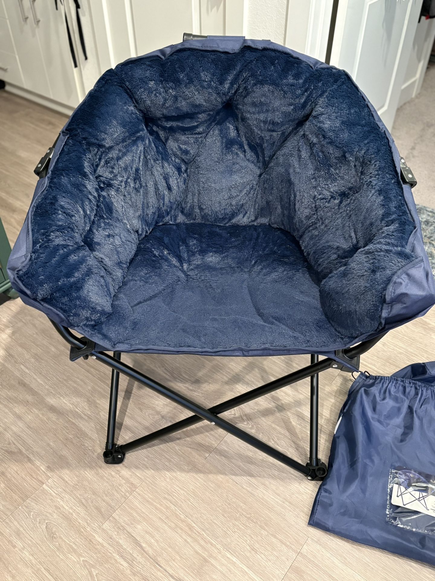 Faux Fur Folding Club Chair + Storage Bag (Like new)