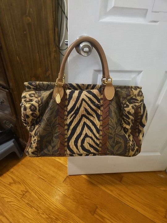 Vintage Gevive By Boyt Animal Print Tapestry Tote Duffle Bag Beautiful Condition