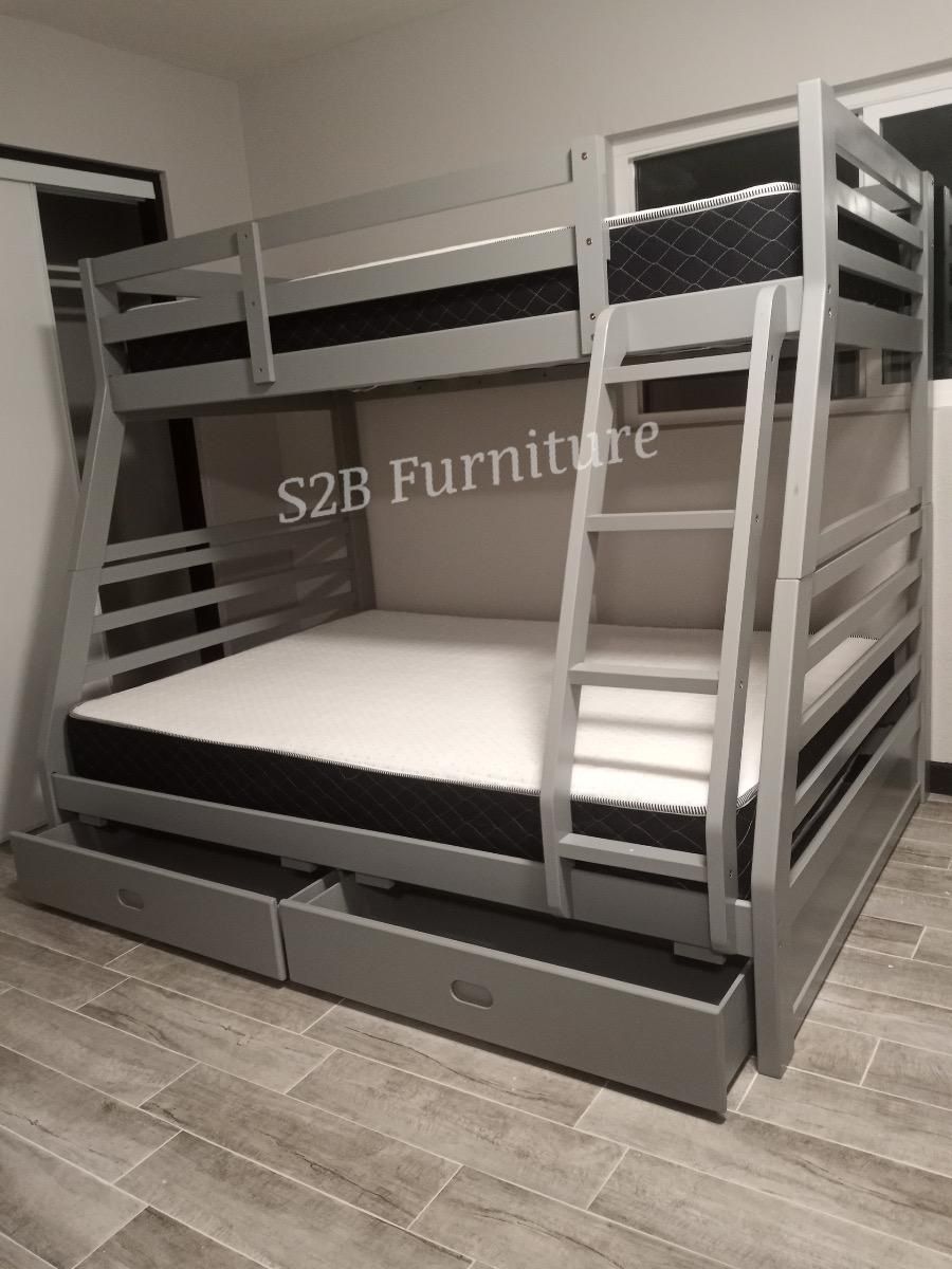 Twin Full Grey Bunkbed With Ortho Mattress Included