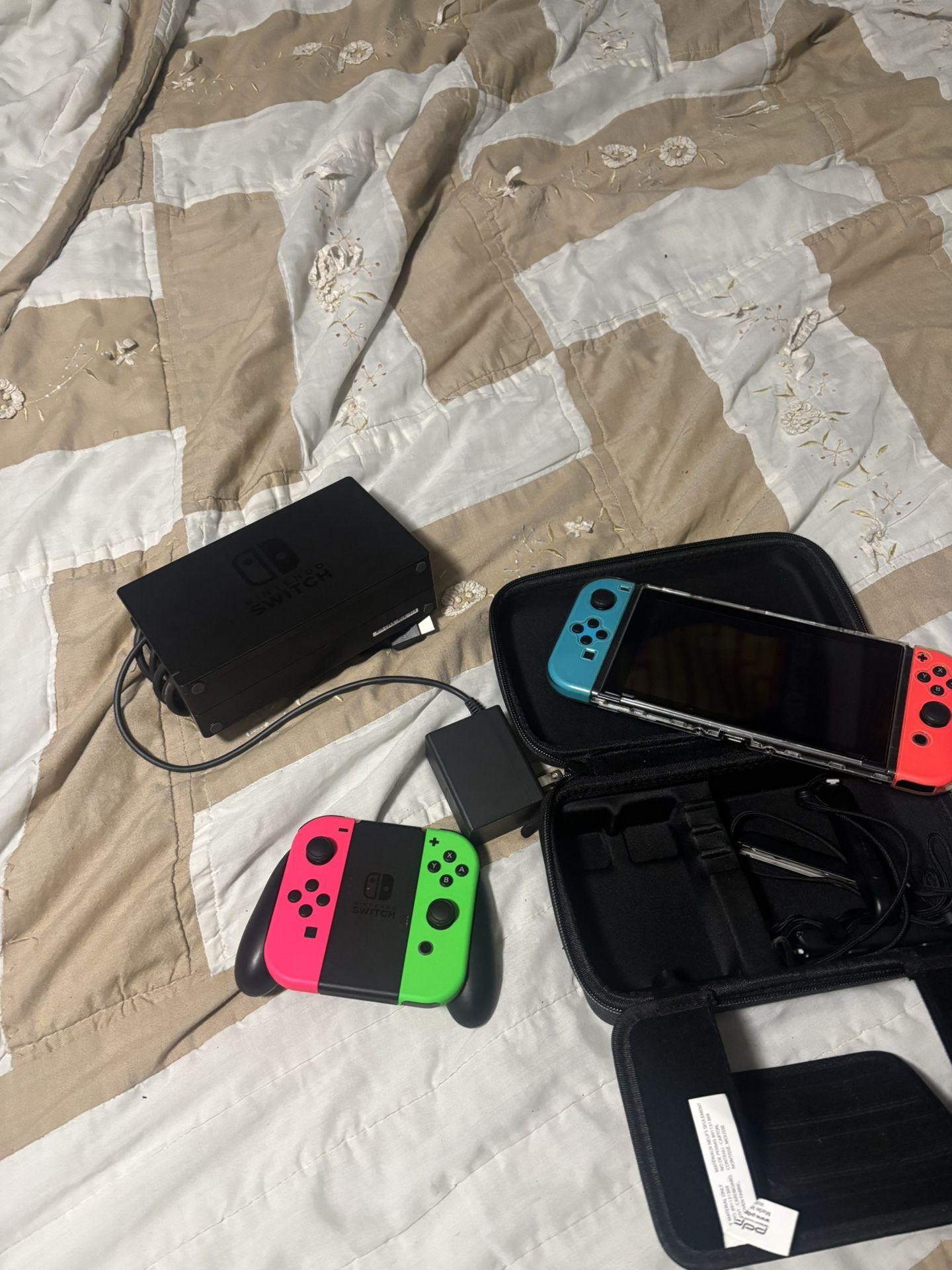 Nintendo switch with case, extra controllers and 256gb sd card.
