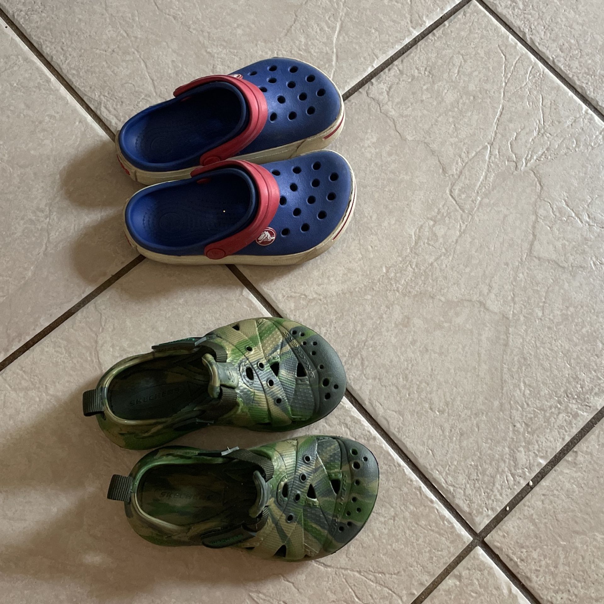 One pair boy crocs size8/9 One pair boy Skechers shoes size 8